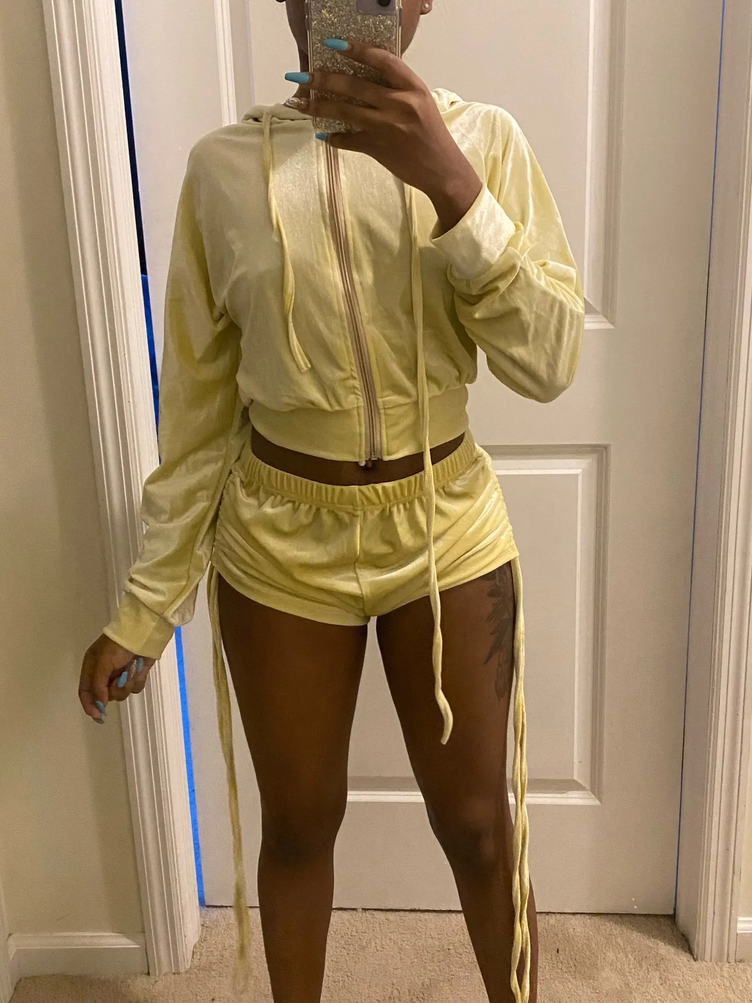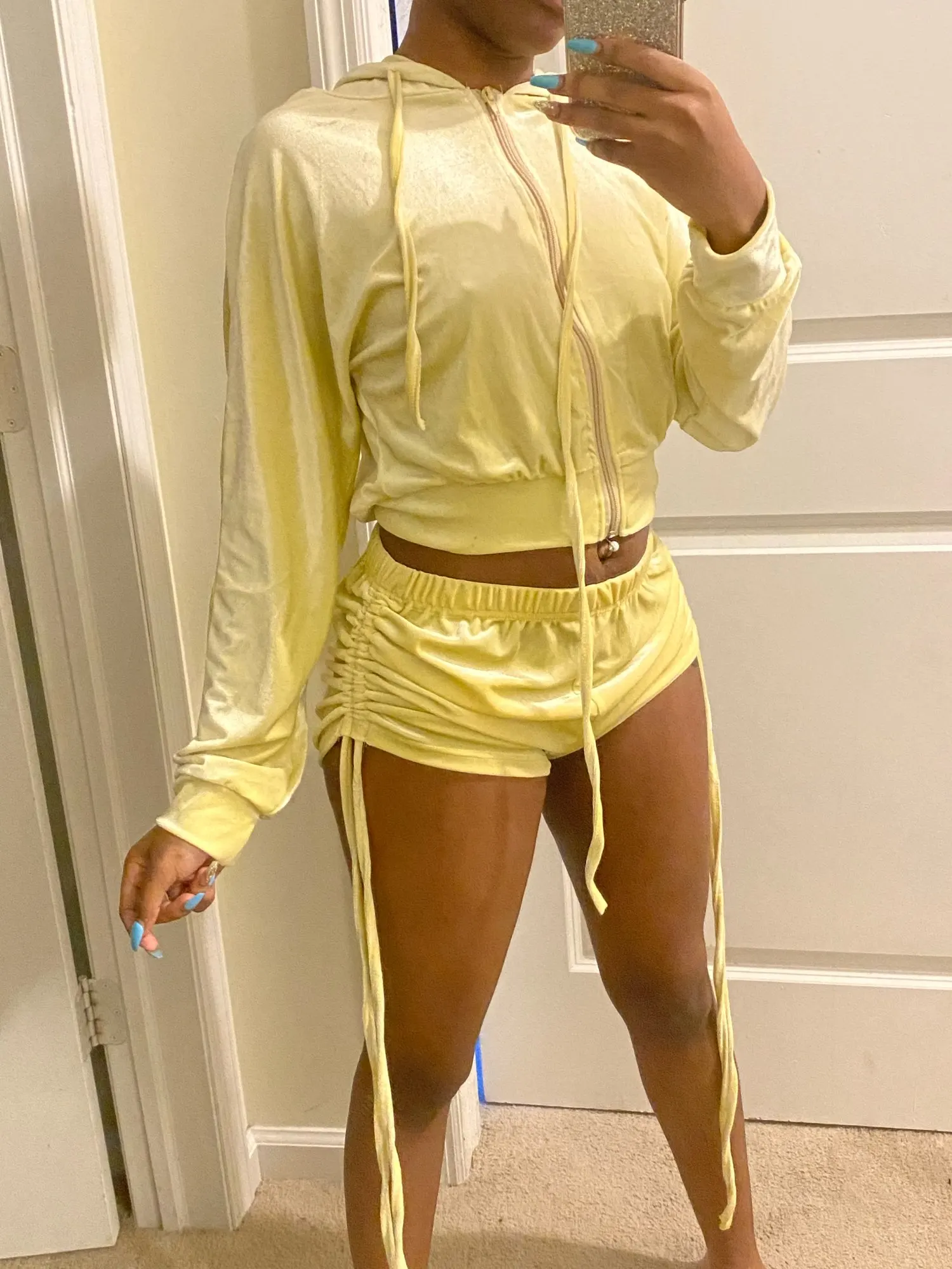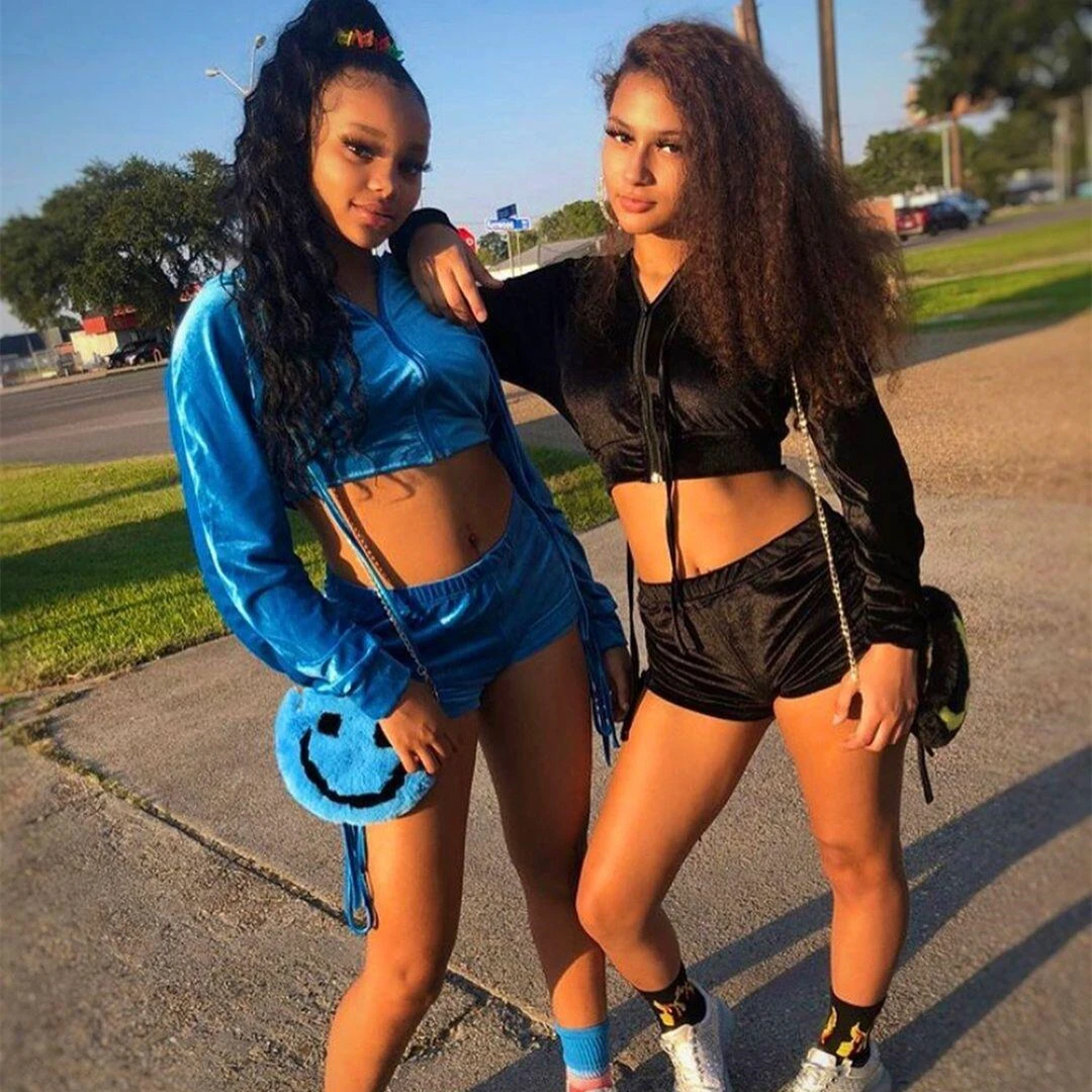 Женский спортивный костюм с длинным рукавом anjaview, розовый Бархатный комплект из 2 предметов, повседневный укороченный топ с капюшоном и шорты женские костюмы, D13-DC43