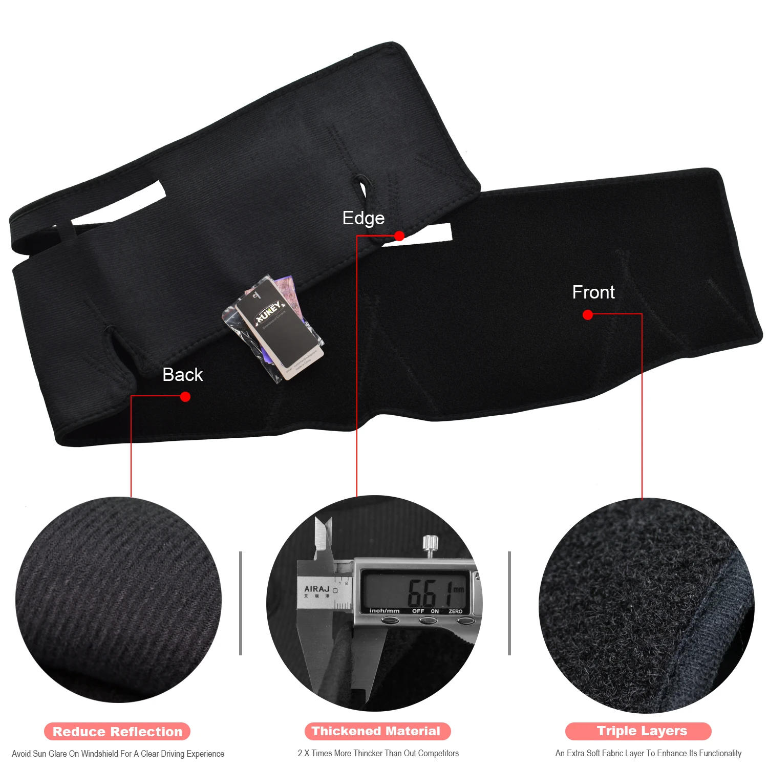 Простая установкаКонтуры для приборной панелиНе садится, не выцветает или не искажаетЗащищает приборную панель от ультрафиолетовых лучейУстраняет растрескиваниеУменьшает бликиУФ стабилизированная Высококачественная полиэфирная Автоматическая тканьДышит, чтобы рассеивать теплоБольшие вентиляционные вырезы, чтобы не ограничивать воздушный поток тумана