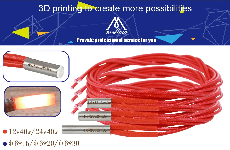Нагревательный картридж Mellow для 3D принтера, 6*15 мм, 6*20 мм, 6*30 мм, 12 В24 В, 40 Вт, для Sidewinder X1, SW-1 Ender 3, J-Head, HOTEND Volcano MK8, MK9