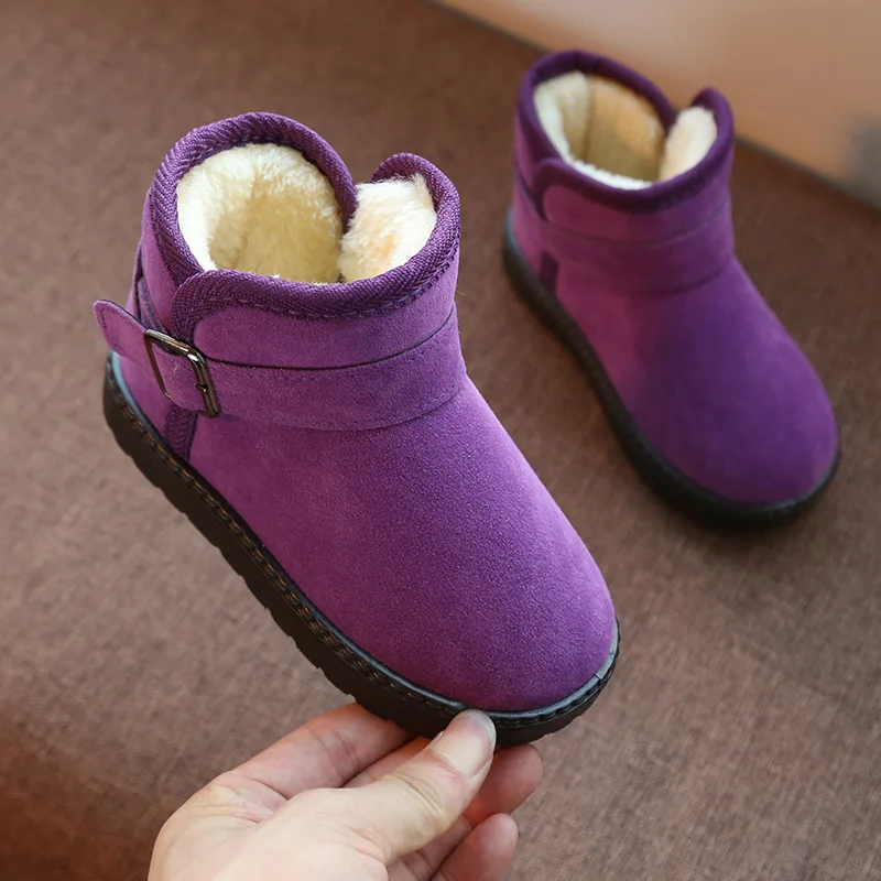 Зимние короткие ботинки для девочек, однотонная плюшевая теплая детская хлопковая обувь, Нескользящие зимние ботинки для мальчиков и девочек, обувь для малышей SCW008