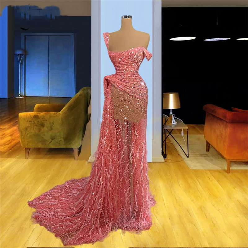 Сексуальные розовые длинные платья с бисером для вечеринки в Саудовской Аравии, новинка 2020, индивидуальная вечерняя одежда, официальное платье Дубая, халаты