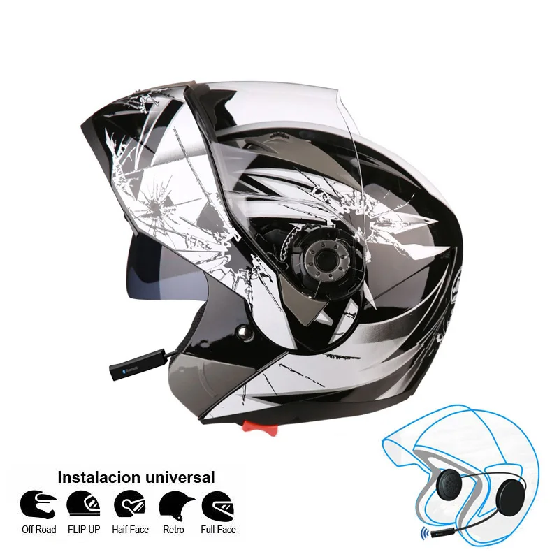 Мотоциклетный шлем с двойным козырьком, шлем с Bluetooth, с двойными линзами, для гонок