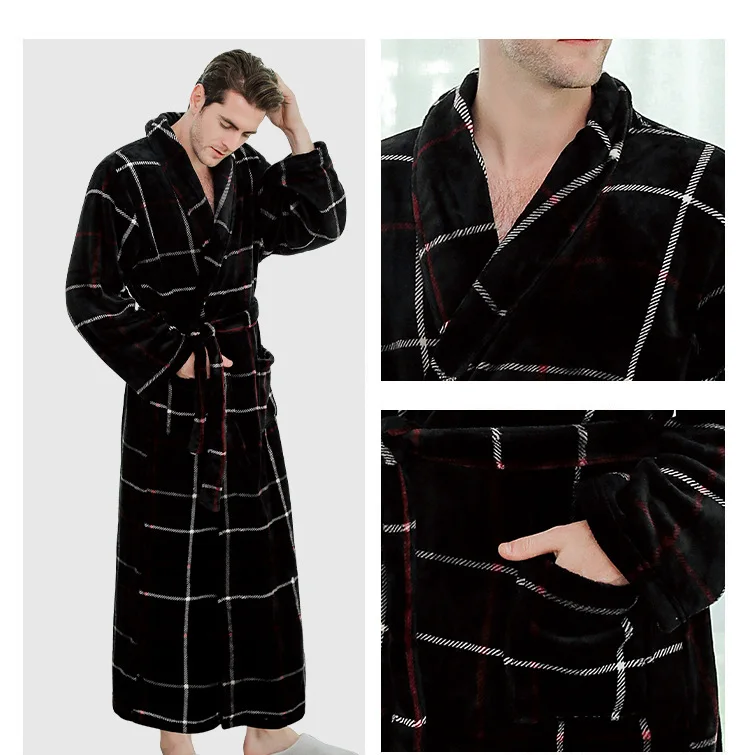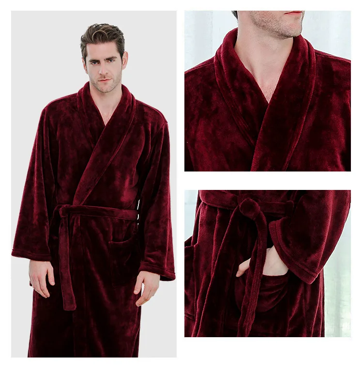 Мужской фланелевый Халат, зимний банный халат из кораллового флиса,...