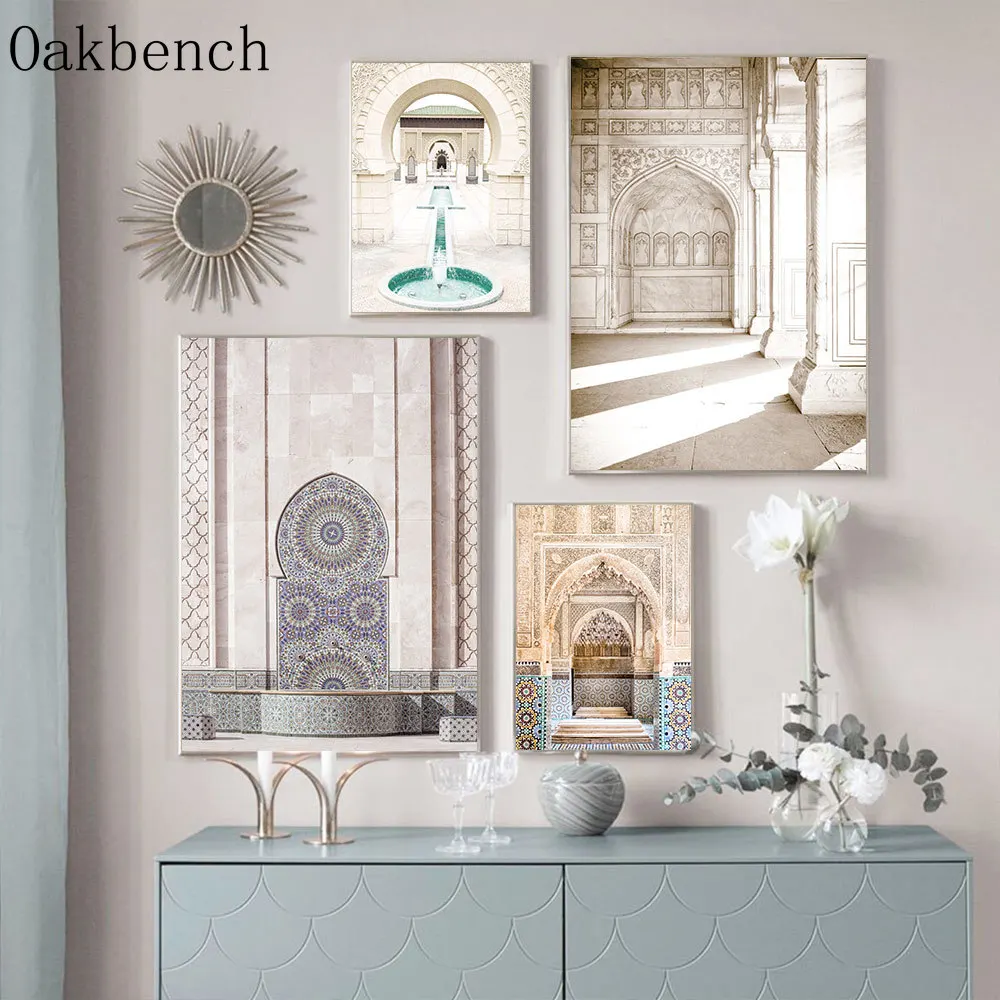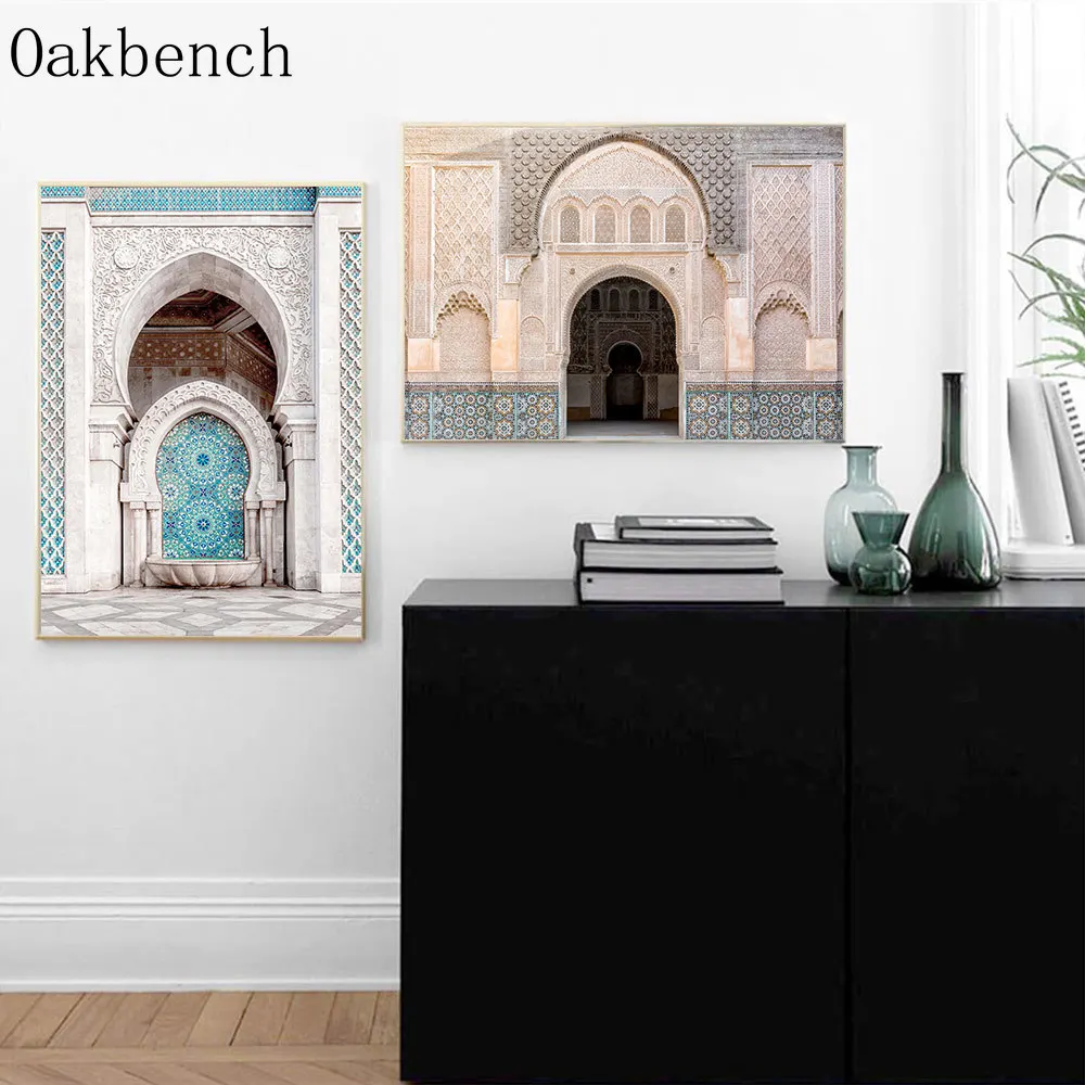 Постер исламской архитектуры, марокканская дверь, настенное искусство, скандинавский холст, винтажная живопись, мусульманские настенные картины, декор для гостиной