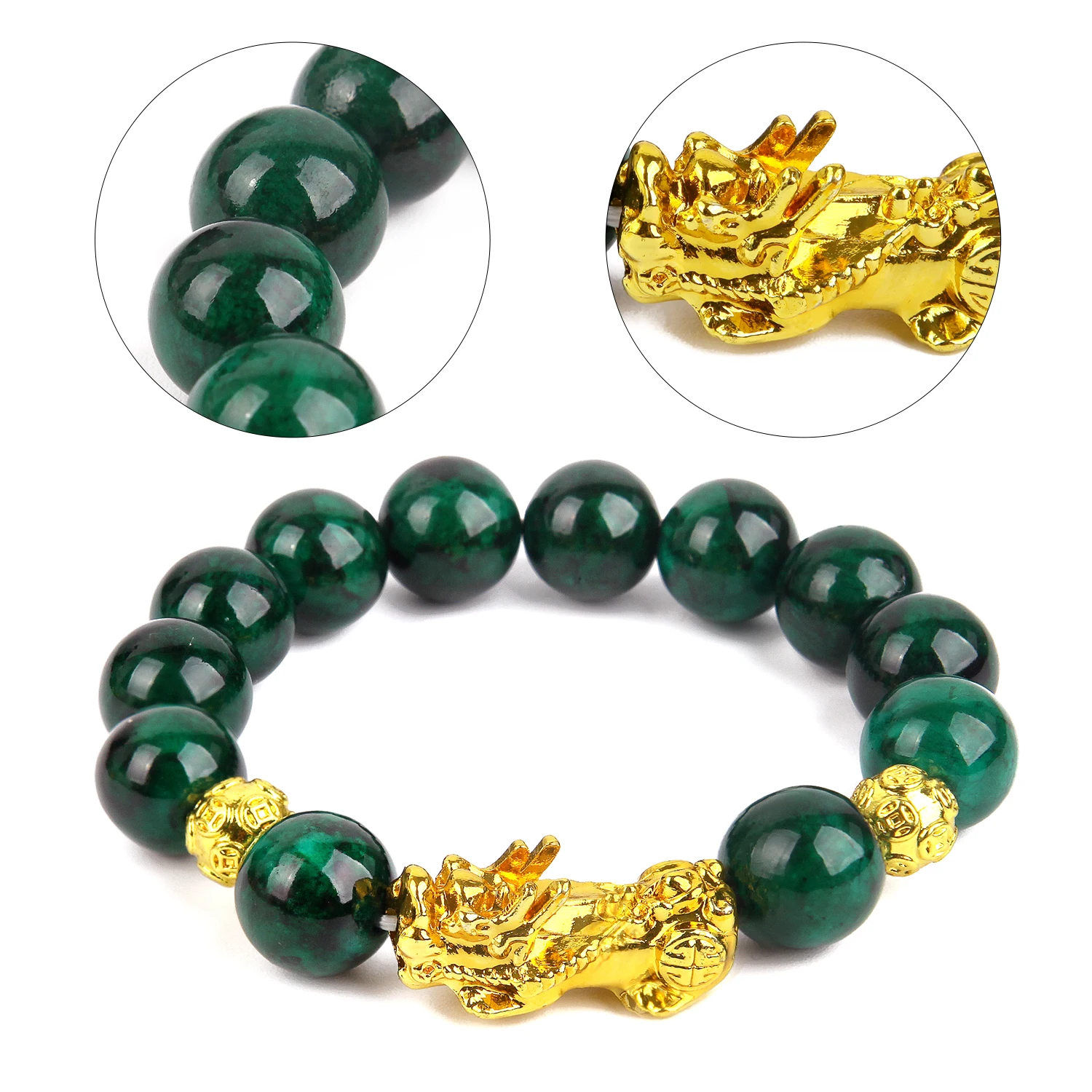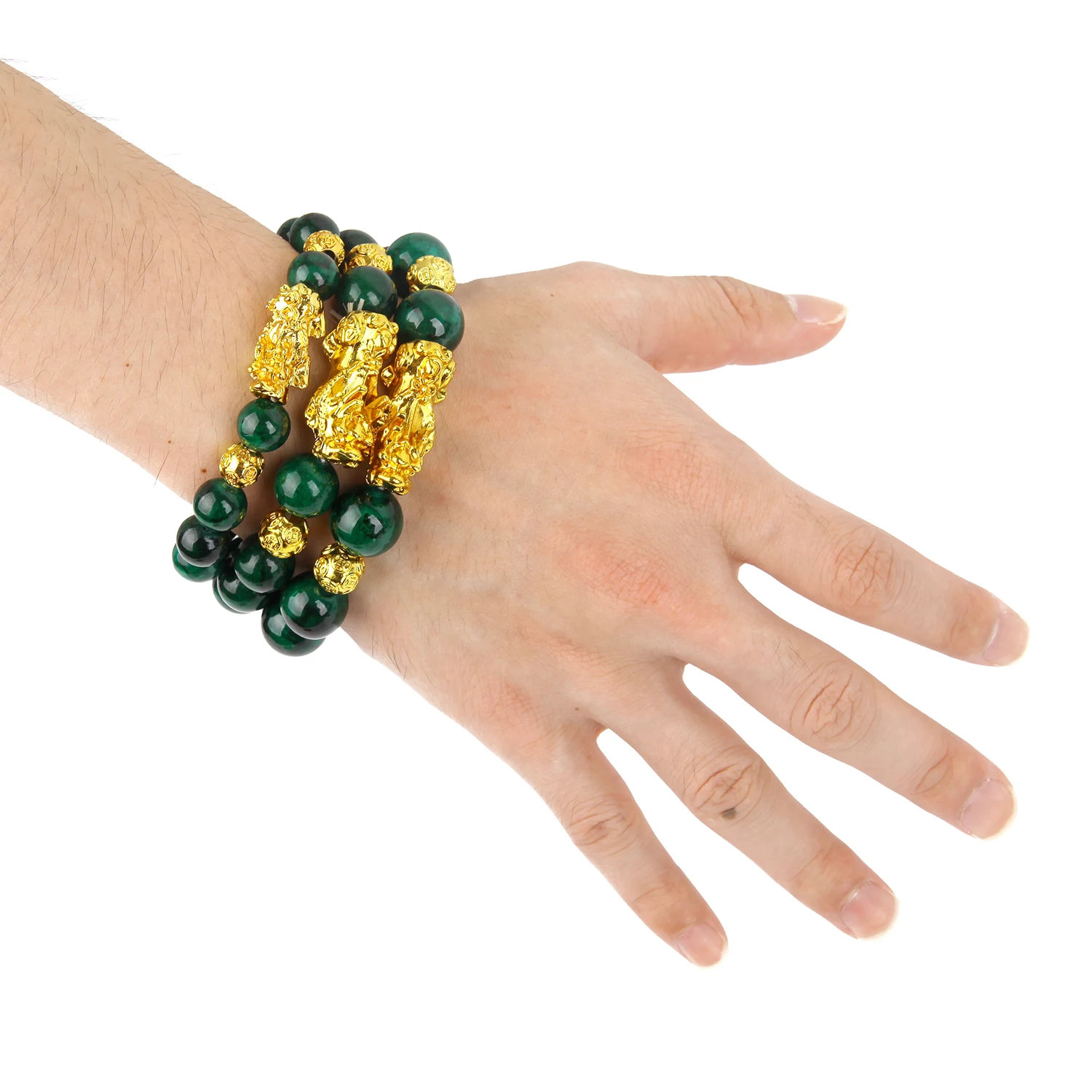 6 стилей золотые браслеты PIXIU для женщин и мужчин, Зеленые Бусины, Парные браслеты, приносит удачу, богатство, фэн-шуй браслеты для мужчин