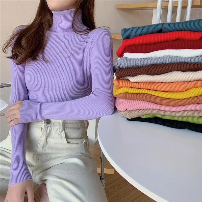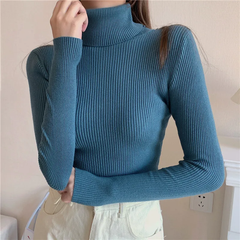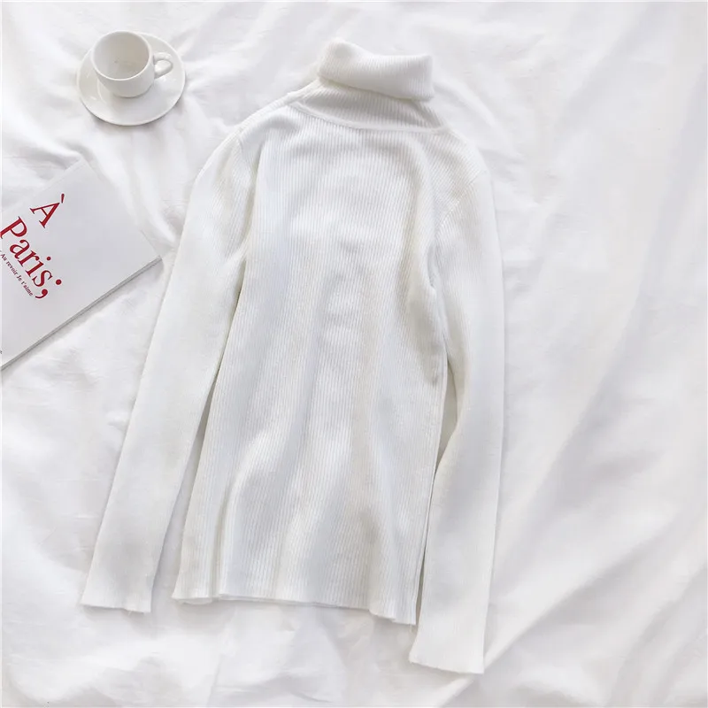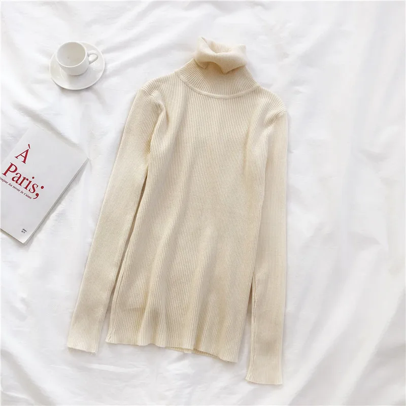 Осенне-зимний новый свитер с длинным рукавом, женские пуловеры с высоким воротником, вязаный свитер, однотонный Повседневный винтажный свитер, женский свитер 10978
