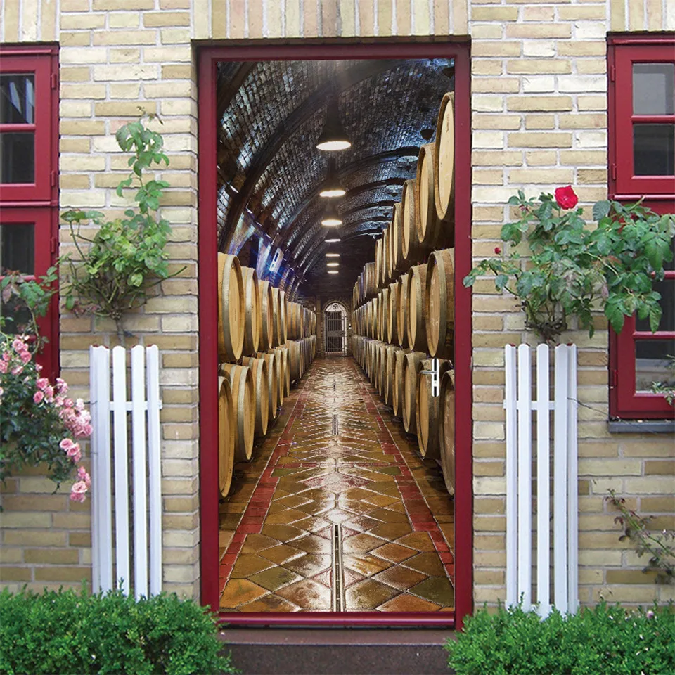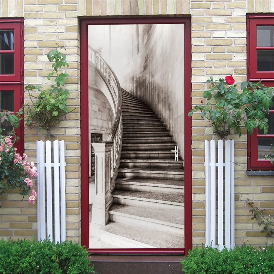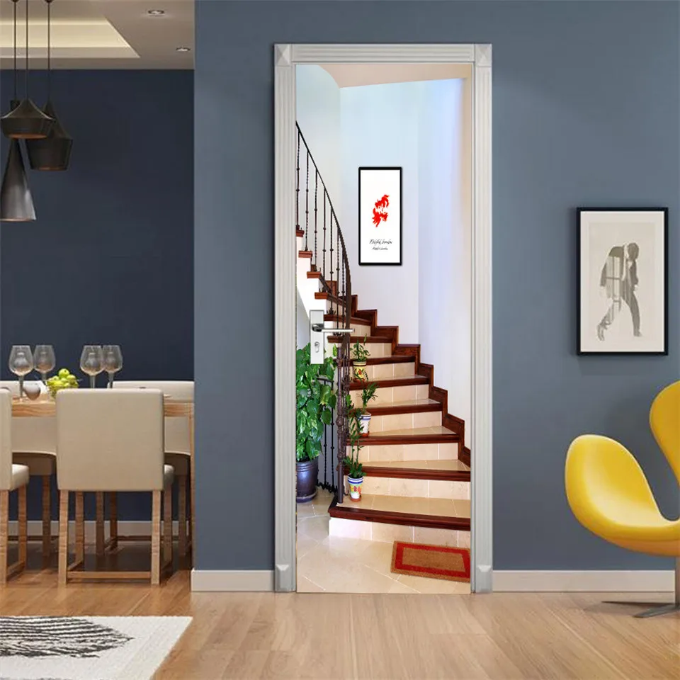 2 шт.компл. виниловые обои для дверей 3D лестница деревянная дверь наклейка для мебели Декор холодильника постер водонепроницаемый пилинг и палка настенные наклейки