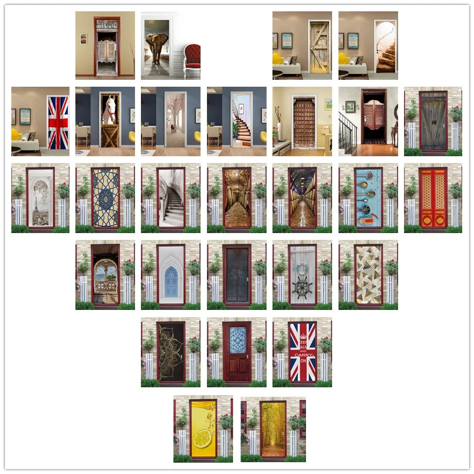 2 шт./компл. виниловые обои для дверей 3D лестница деревянная дверь наклейка для мебели Декор холодильника постер водонепроницаемый пилинг и палка настенные наклейки