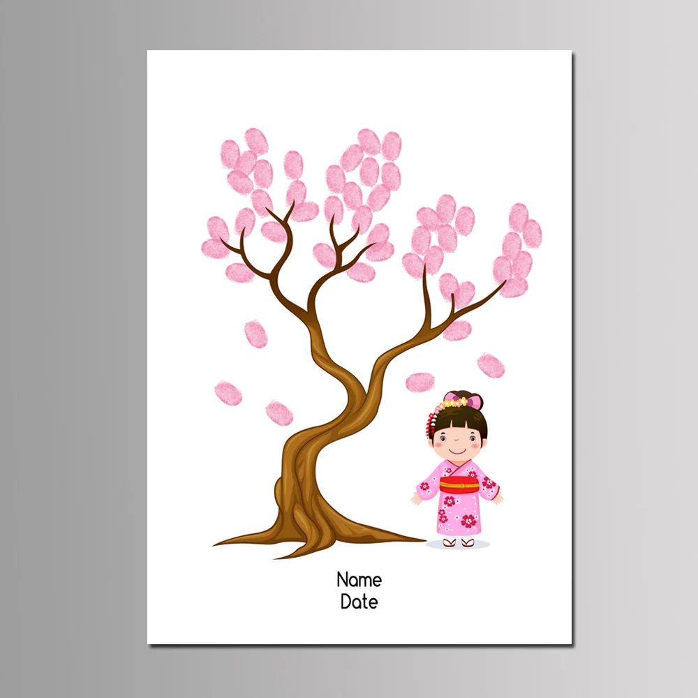 Дети мальчик девочка день рождения пользу 50x70 см DIY отпечатки пальцев, дерево, подпись книги муслин ИД Декор печать холст живопись с чернилами