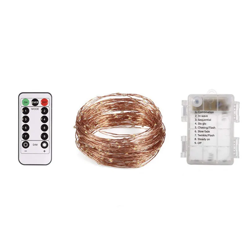 Рождественская гирлянда 10 м, 20 м, водонепроницаемая гирлянда с дистанционным управлением, украшение на батарейках, светодиодная гирлянда с 8 режимами таймера, медный провод