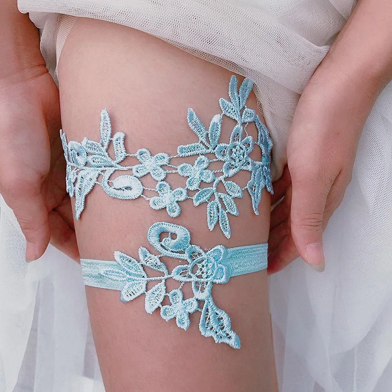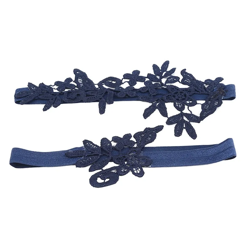 Свадебное кружевное кольцо на ногу, 2 предмета, свадебные подвязки, темно-синие, белые, с цветочной вышивкой, модное сексуальное свадебное кольцо на бедро, подвязки
