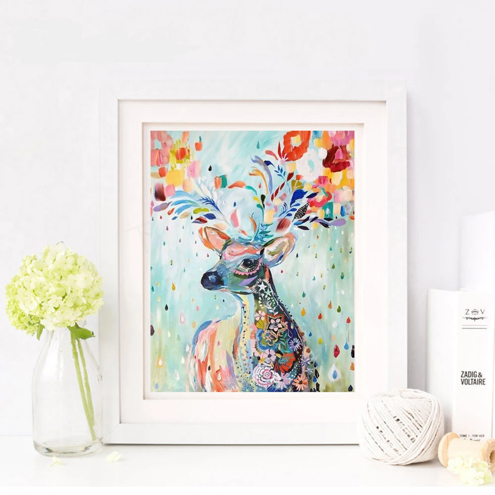 Абстрактное граффити, красочный олень, животное, холст, печать, плакаты и принты, Настенная картина для гостиной, домашний декор