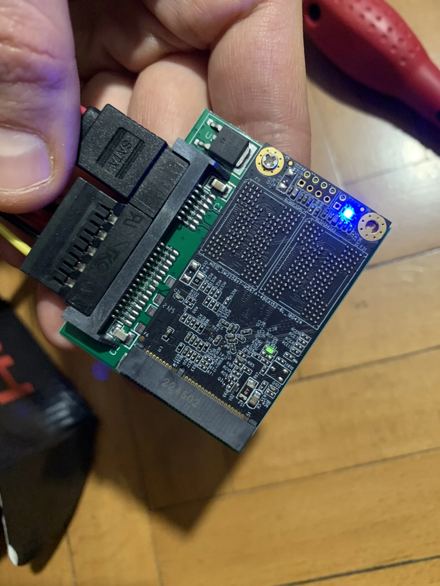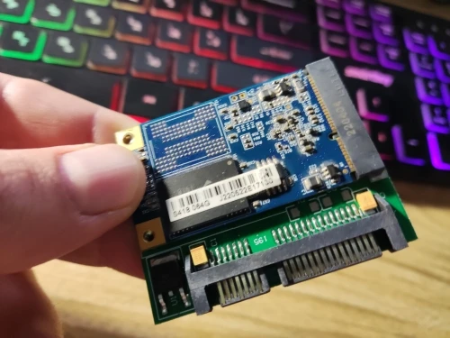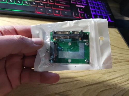 Подключил к ноутбуку - работает. Вставил mSATA от старого ноутбука - все определяется системой. Внизу есть индикаторная подсветка.
