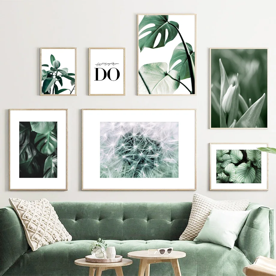 Зеленые абстрактные линии растения листья цитаты настенная живопись...