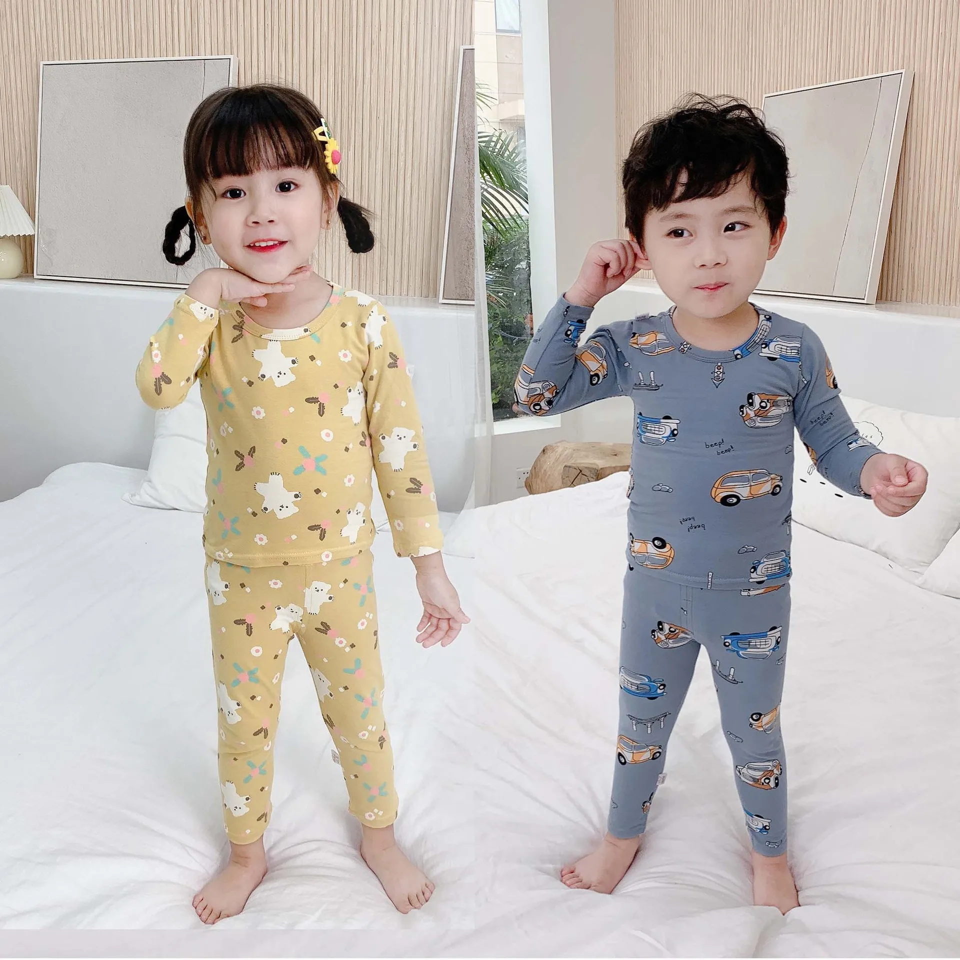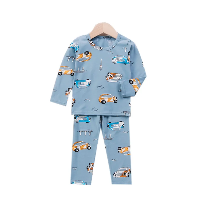 Осень 2020, детские пижамы для девочек и мальчиков, Детский костюм с мультяшными животными, комплект пижам из лайкры и хлопка, Детский комплект для домашнего обслуживания