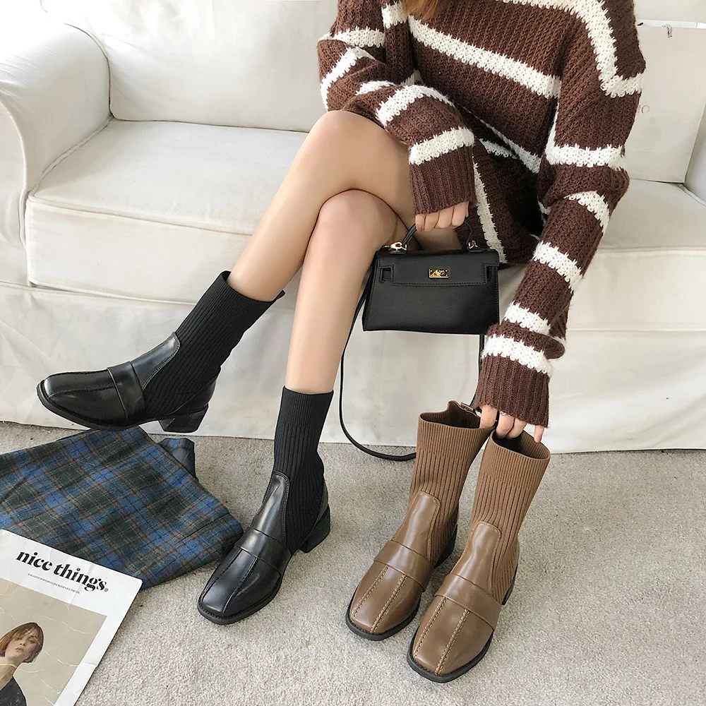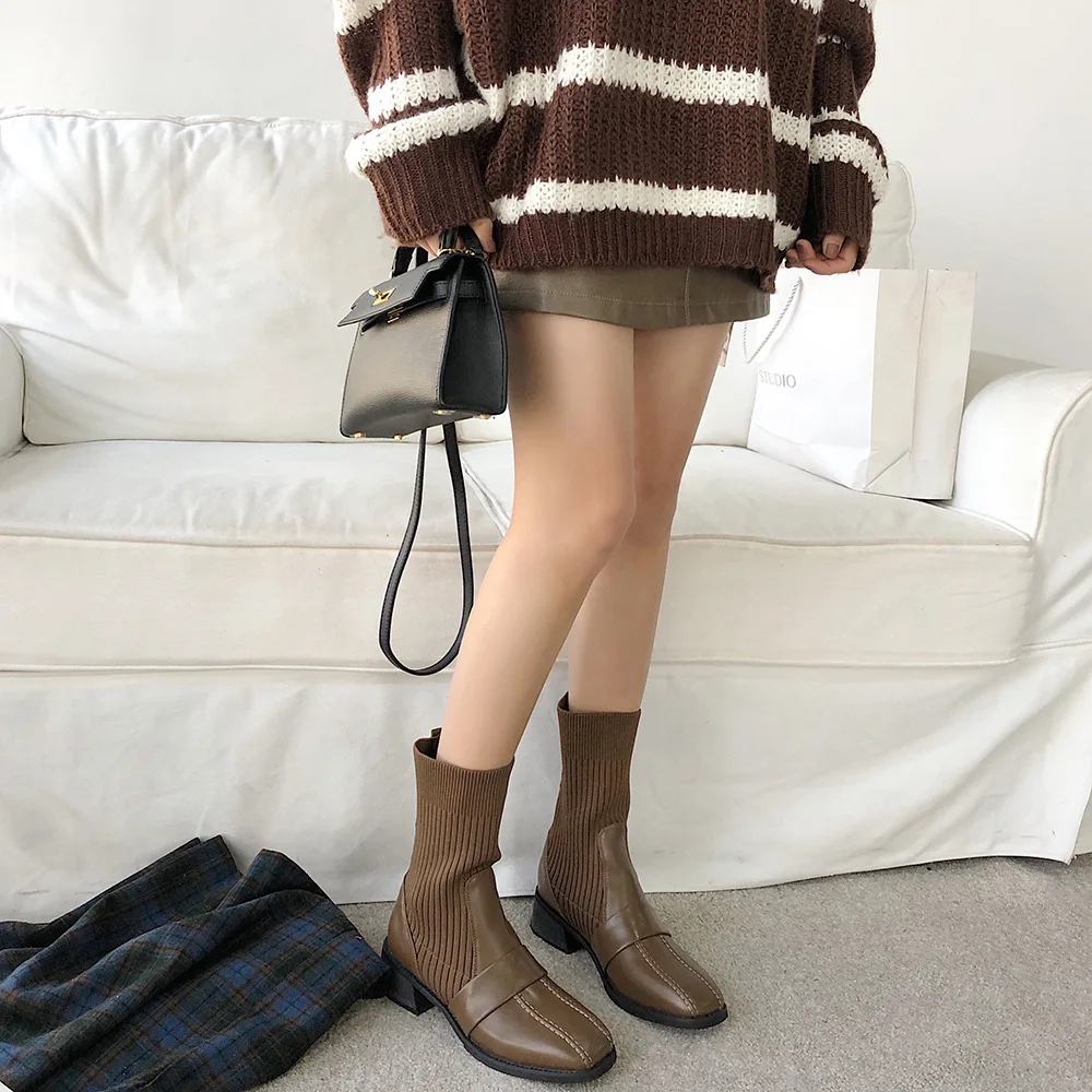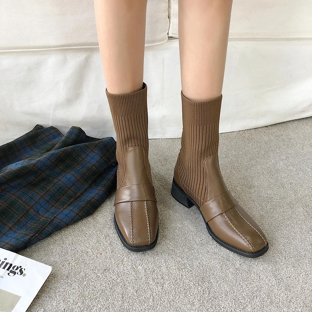 Осенние женские ботинки, дамские ботинки-носки, женские ботильоны без шнуровки, женские брендовые ботинки, модные повседневные ботинки, коричневая теплая обувь для девочек