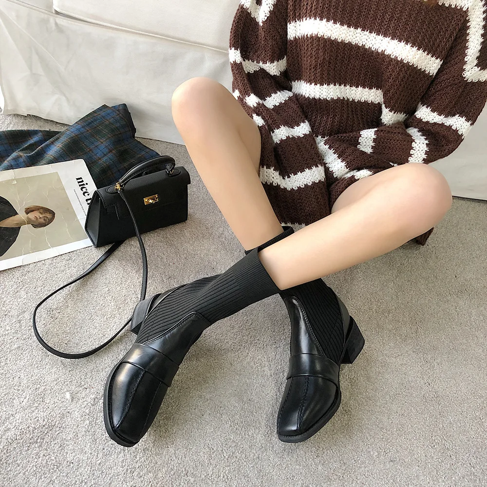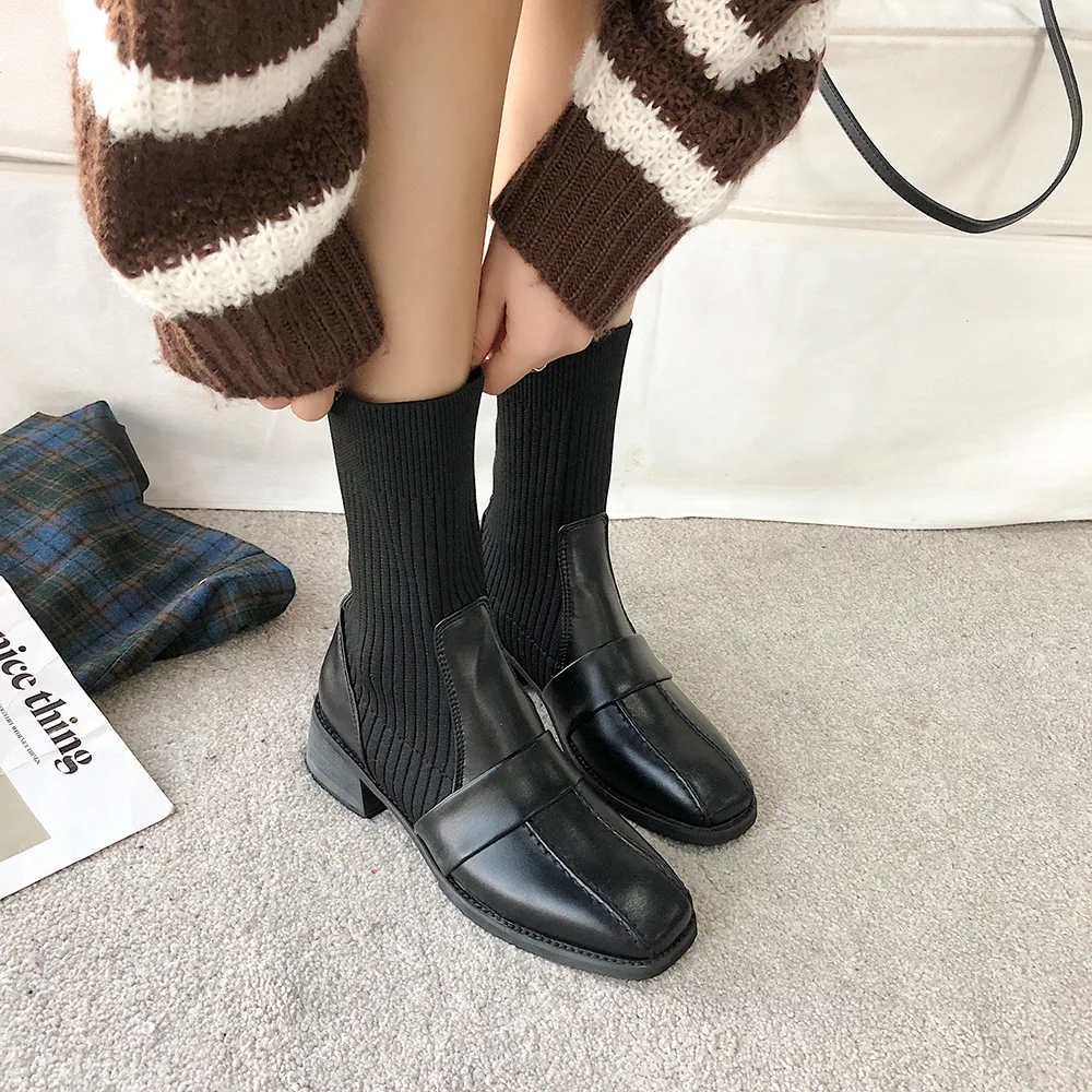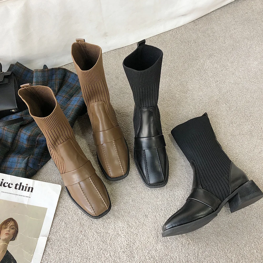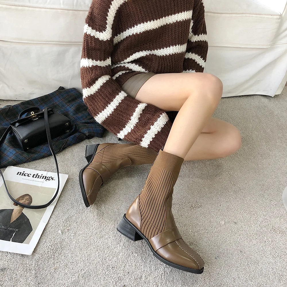 Осенние женские ботинки, дамские ботинки-носки, женские ботильоны без шнуровки, женские брендовые ботинки, модные повседневные ботинки, коричневая теплая обувь для девочек