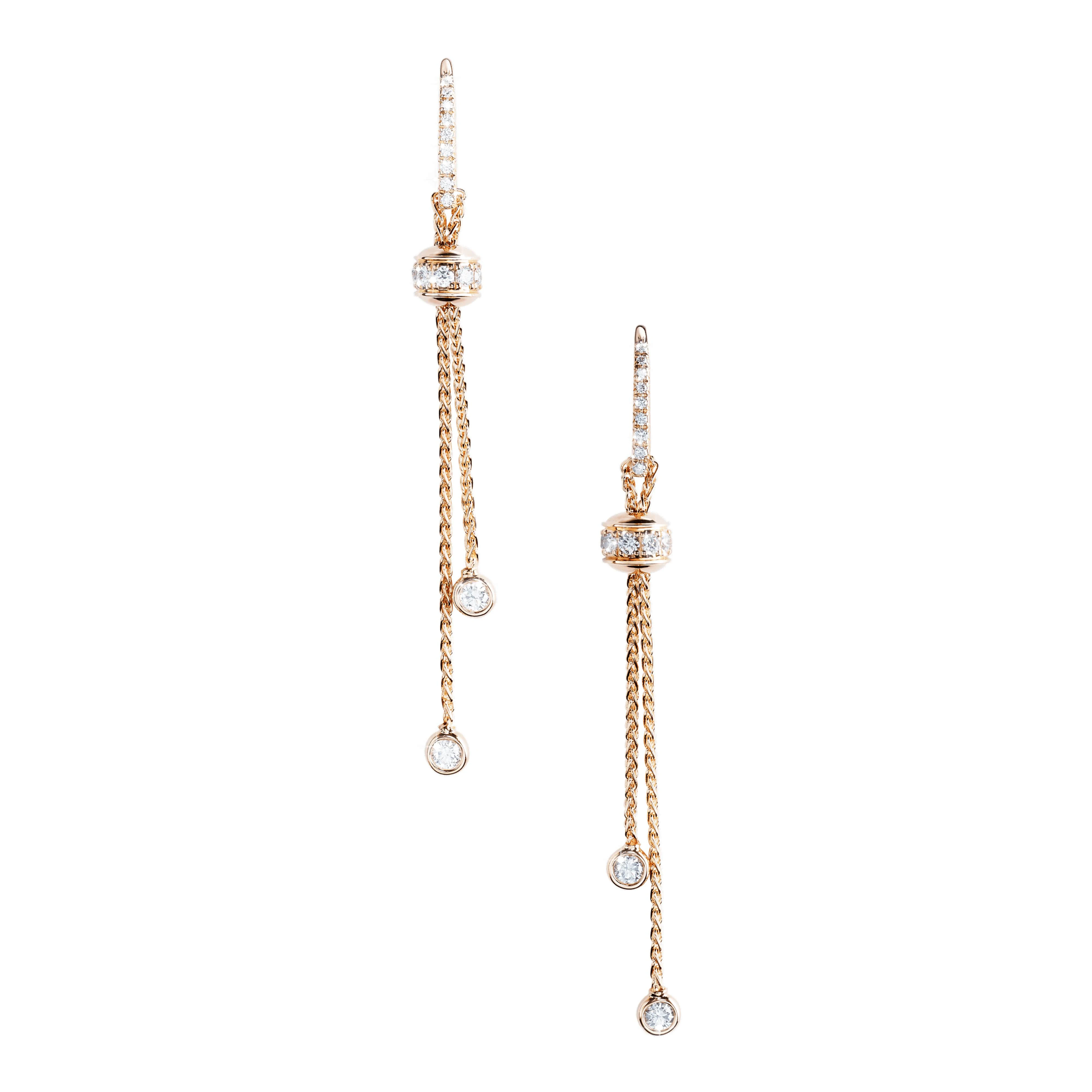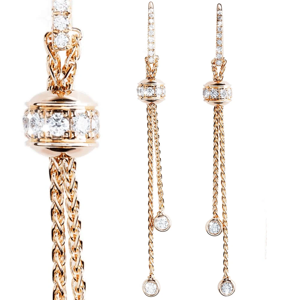 Женские серьги-гвоздики из розового золота с кисточками, 14 к