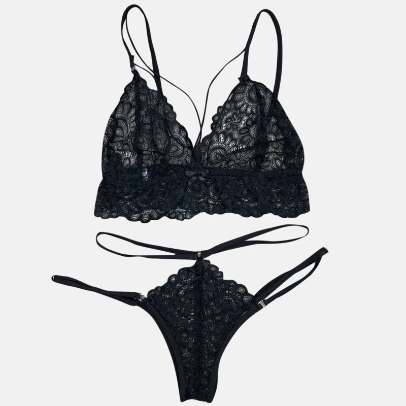 Комплект нижнего белья женский кружевной, черный прозрачный бюстгал...