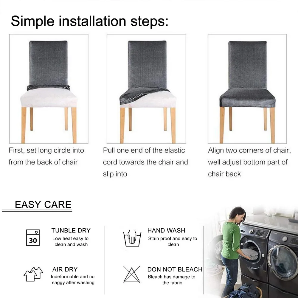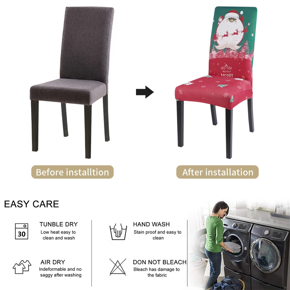 Тип: чехлы для обеденных стульевРазмер: Высота спинки: 45-60 смДлина и ширина сиденья: 38-48 смЦвет: показано на картинкеМатериал: 92% полиэстер 8% спандексУпаковка: 1 шт. х чехлы для стульевОсобенности:Полиэстер спандекс. Мягкий материал, удобный и устойчивый к морщинкам, не требует глажки.Растягивающийся материал, растягивающийся, быстро восстанавливается, надежная посадка с пришитым эластичным подолом.Машинная стирка, легко моется и моетсяПривлекательный дизайн и красивый патернПусть ваш старый или уродливый стул будет выглядеть как новый и более красивый. Также может предотвратить царапины и укусы вашего стулаОн используется для украшения семейной столовой на Рождество и т. д.