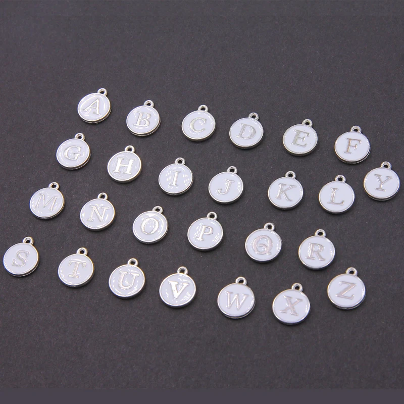 Подвески с буквами алфавита, двусторонние, эмалированные, белые, че...