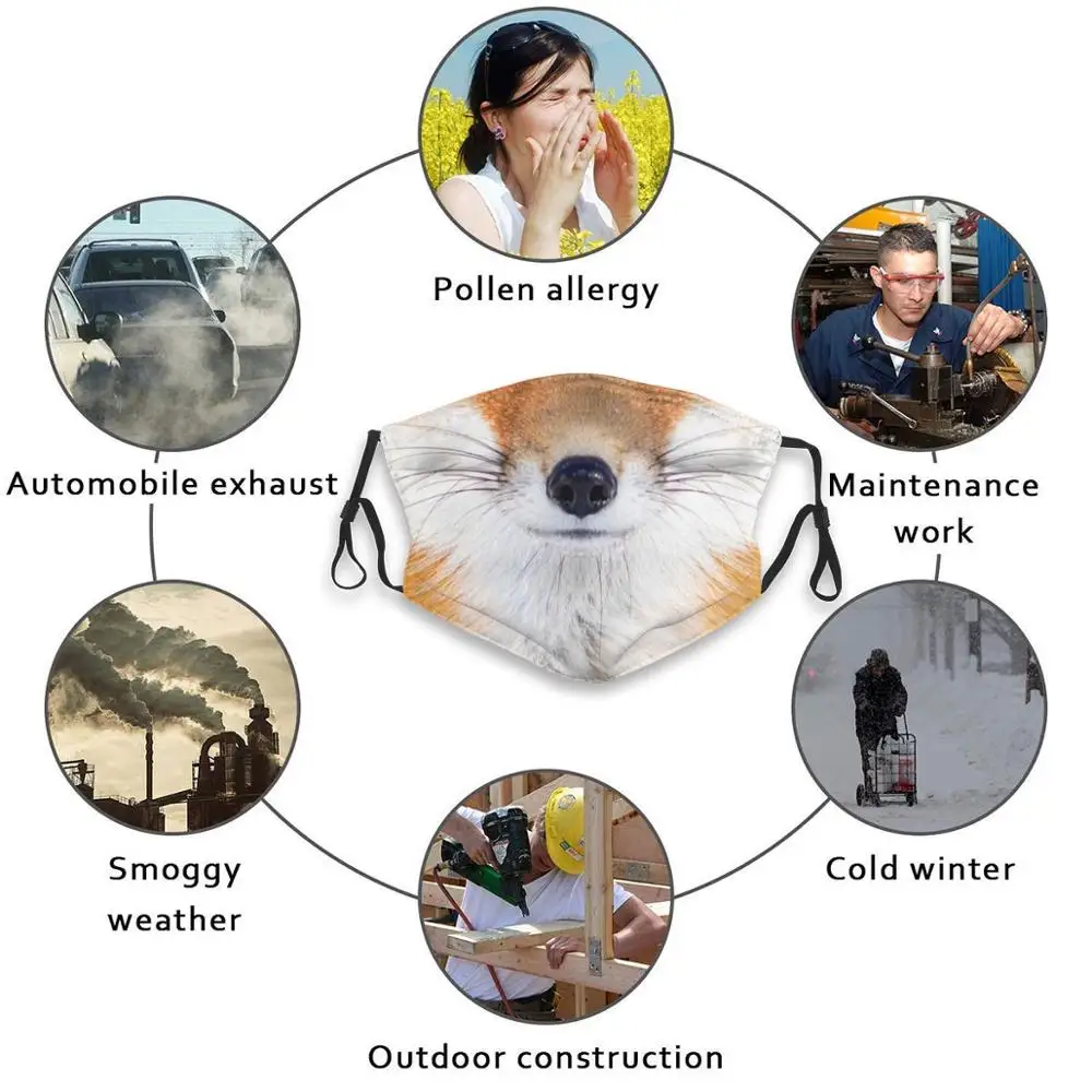 Моющаяся маска для рта с фильтром, пылезащитная креативная маска для лица с изображением Красной лисы, мамы, папы, лисы, мамы, папы, лисы, папы, животных