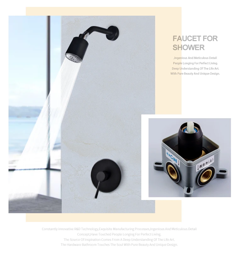 Особенности и характеристики:Смеситель для душа/смеситель для душа/набор для душаИспользование: ванная комната/душевая комната/туалетМатериал: латуньЦвет: матовый черныйУстановка: НастенныйОсобенность: Скрытая установкаВключая все монтажные фитинги