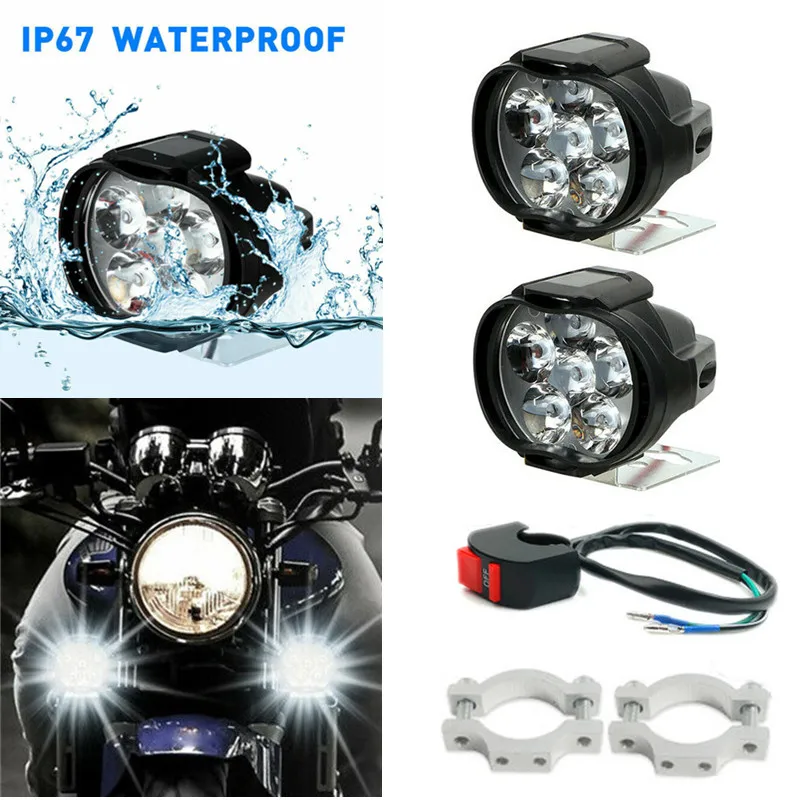 2 шт. мотоциклы головной светильник 6500k белый супер яркий 6 свето...