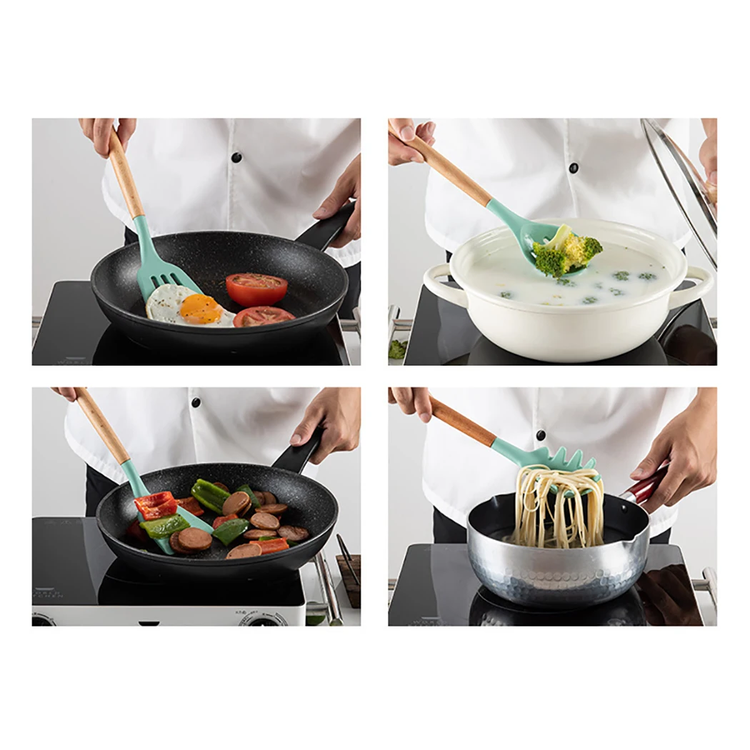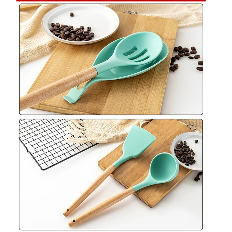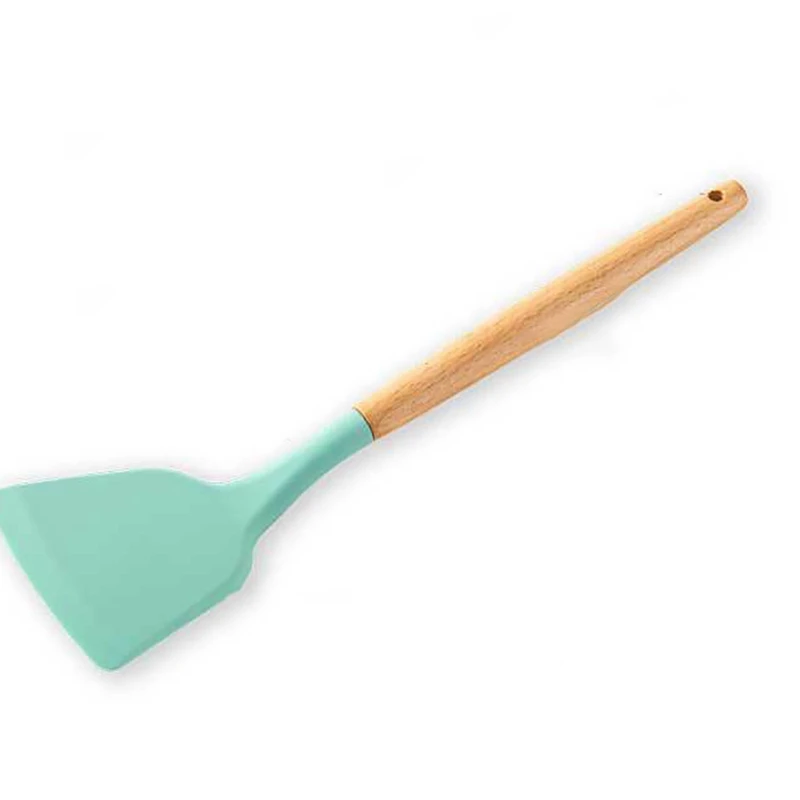 Мятно-зеленый кухонная утварь антипригарная деревянная ручка кухонная утварь Премиум силиконовый материал кулинарная лопатка ложка товары для дома