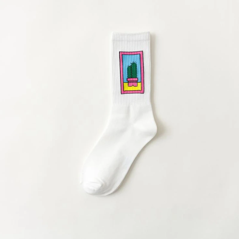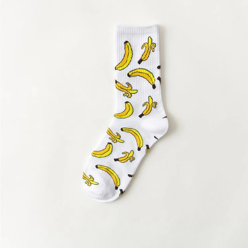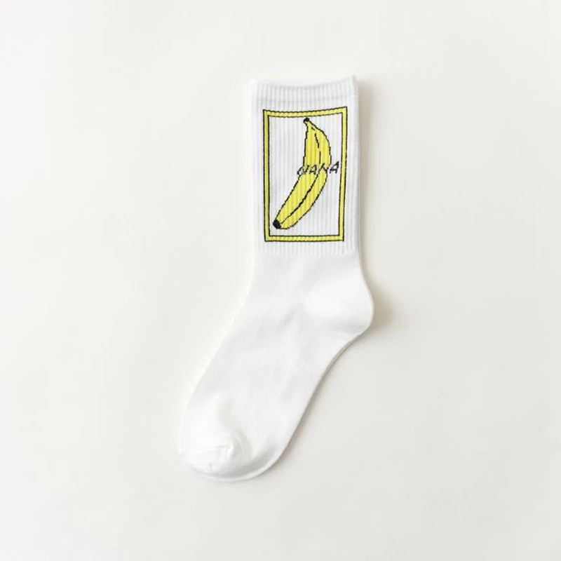 Носки женские в полоску, с рисунком банана, кактуса, Луны, пламени