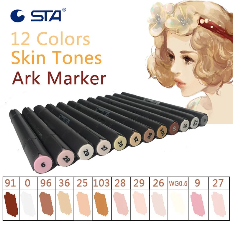 12 Цветов STA тон кожи Маркер ручки Набор Профессиональный рисунок маркеры для рисования манга дизайн товары для рукоделия