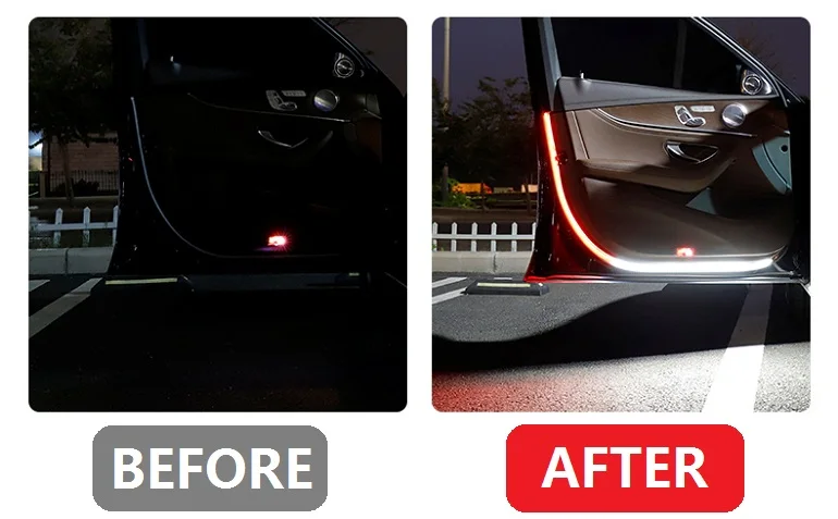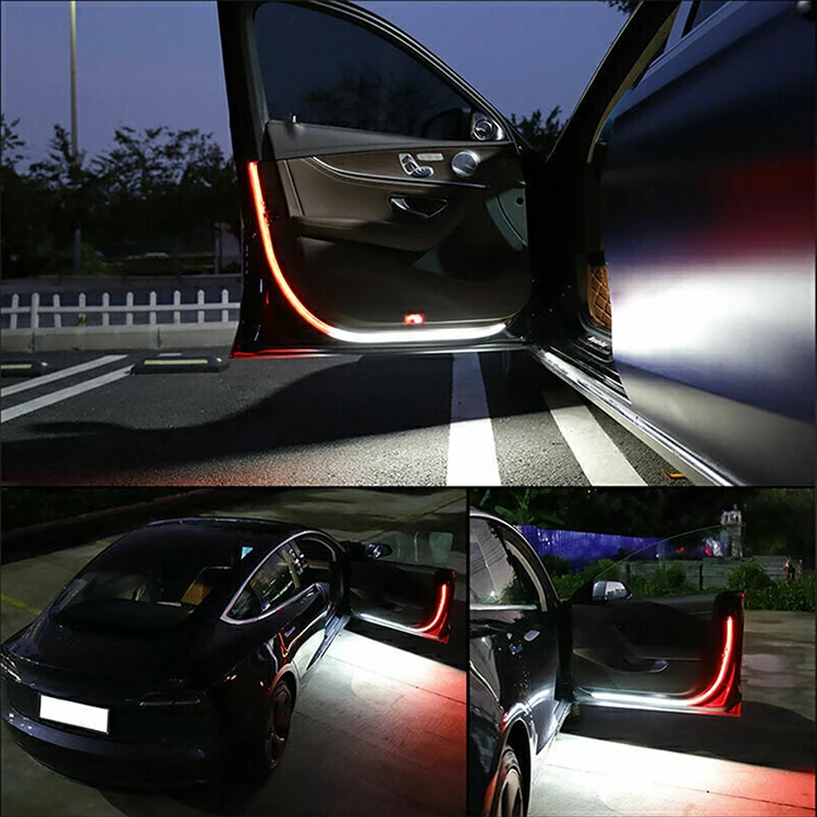 Сигнальная лампа столкновения двери автомобиля Предупреждение открытие двери и добро пожаловать автомобильная лампа на дверь Материал: силикон светодиодный Входное напряжение: 12 В Степень водонепроницаемости: IP68 Цвет светильник: белый + красный Лампы: подсветка 5050SMD Мощность: 10 Вт Подходит: Универсальный для всех автомобилей Особенности: водонепроницаемый, мигающий, плавный Длина ленты: 47 дюймов = 120 см