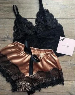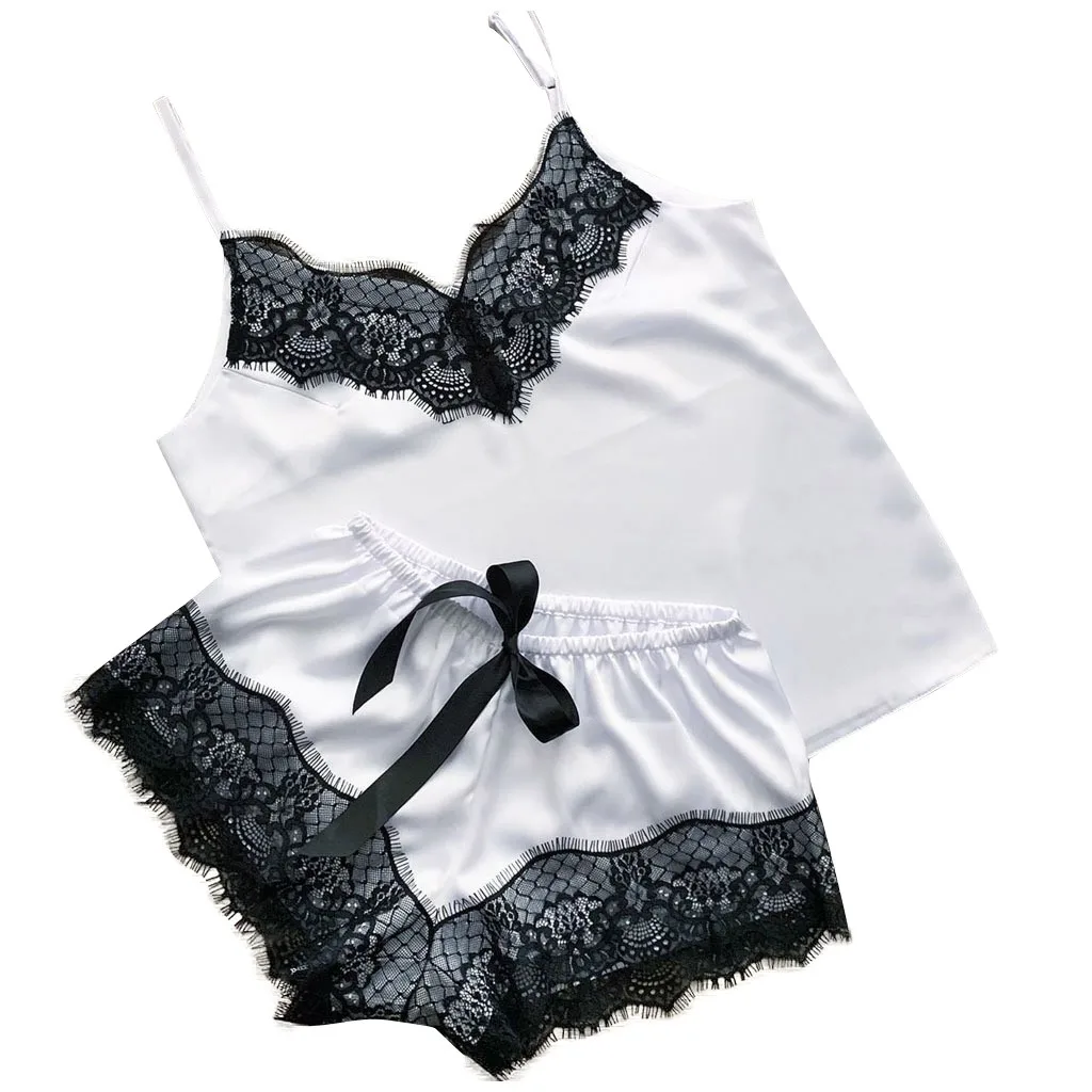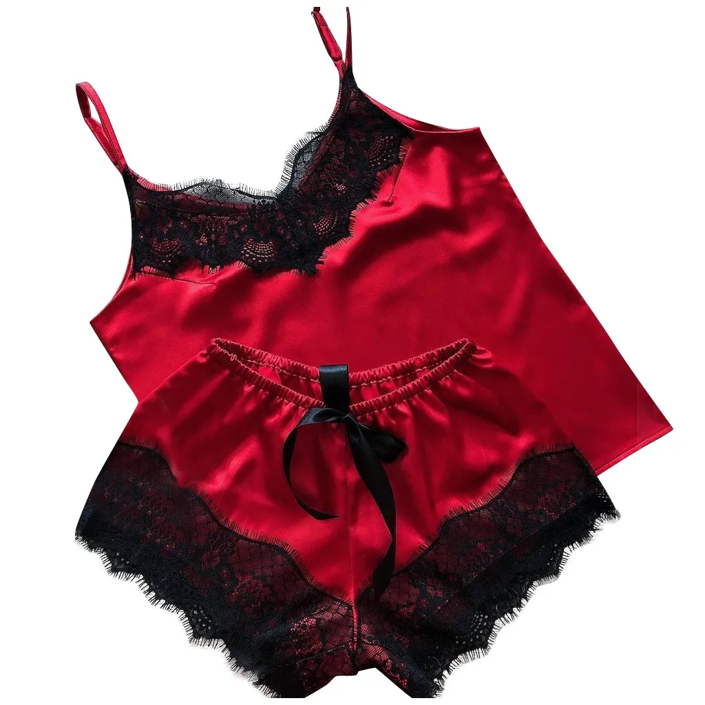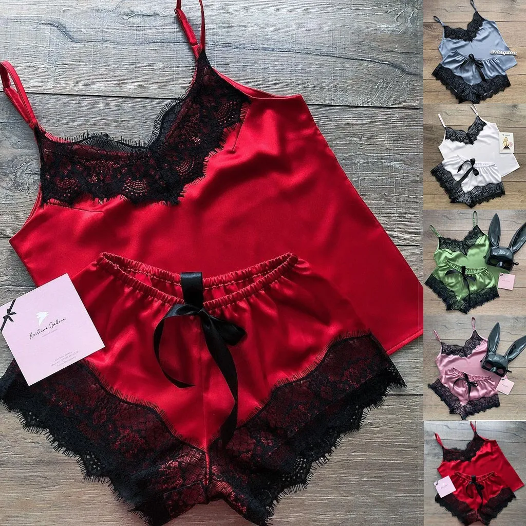 Женский пижамный комплект сексуальный комплект нижнее белье кружевная ночная рубашка без рукавов на бретельках топ и шорты