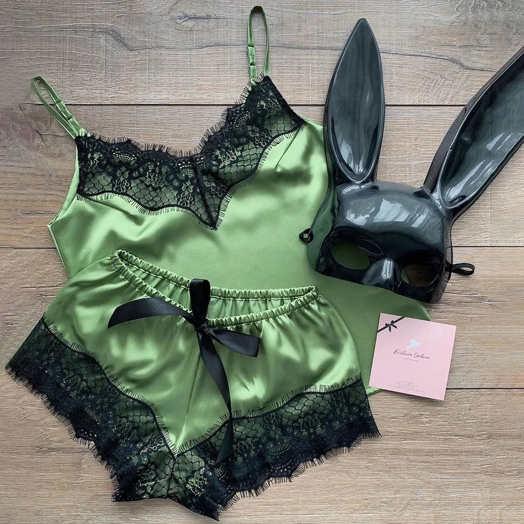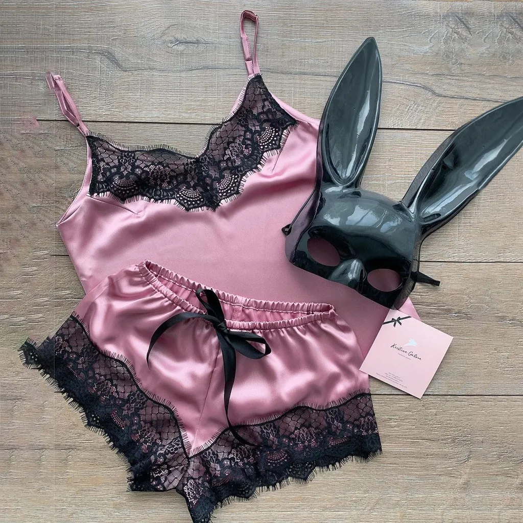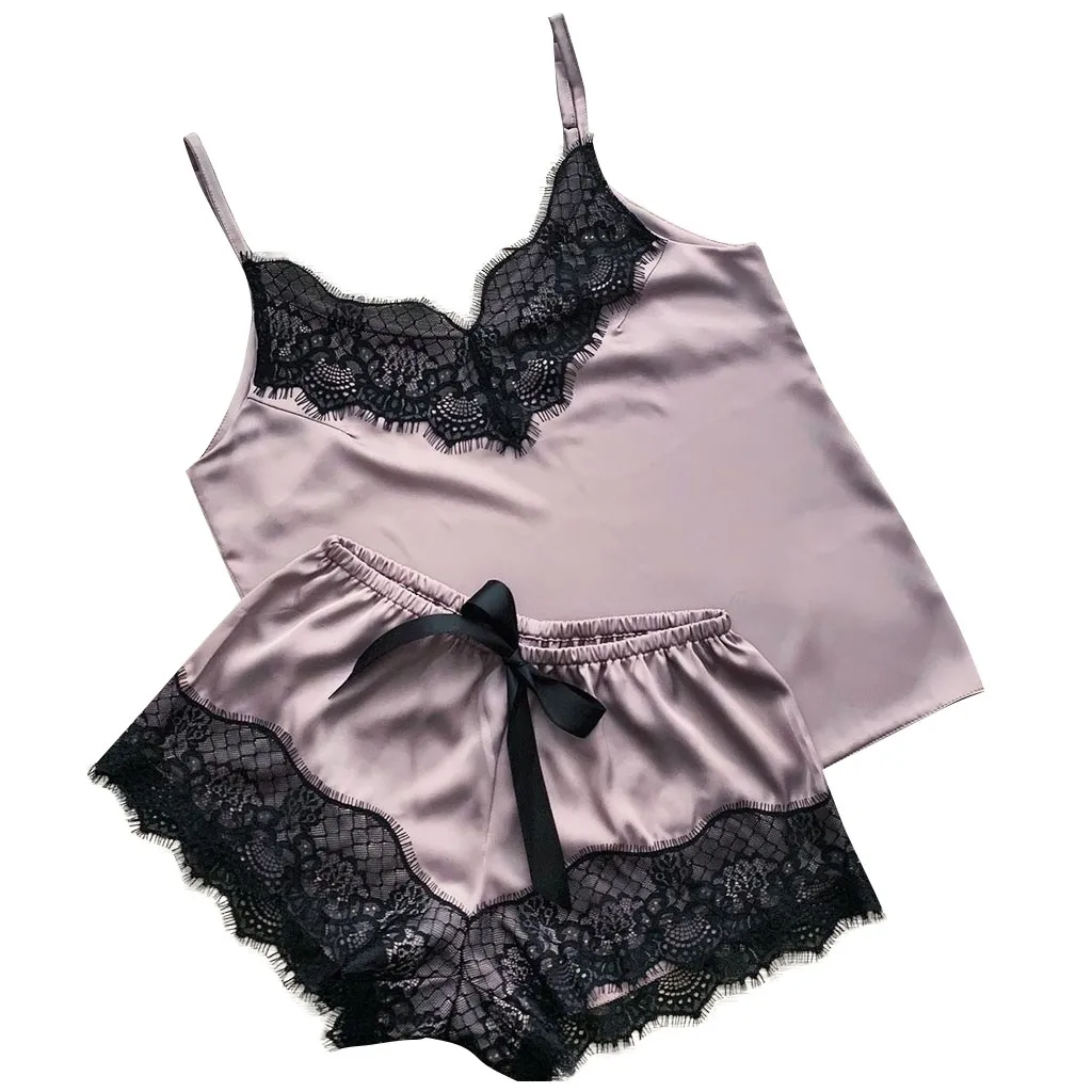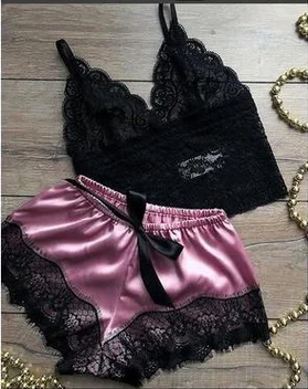 Женский пижамный комплект сексуальный комплект нижнее белье кружевная ночная рубашка без рукавов на бретельках топ и шорты