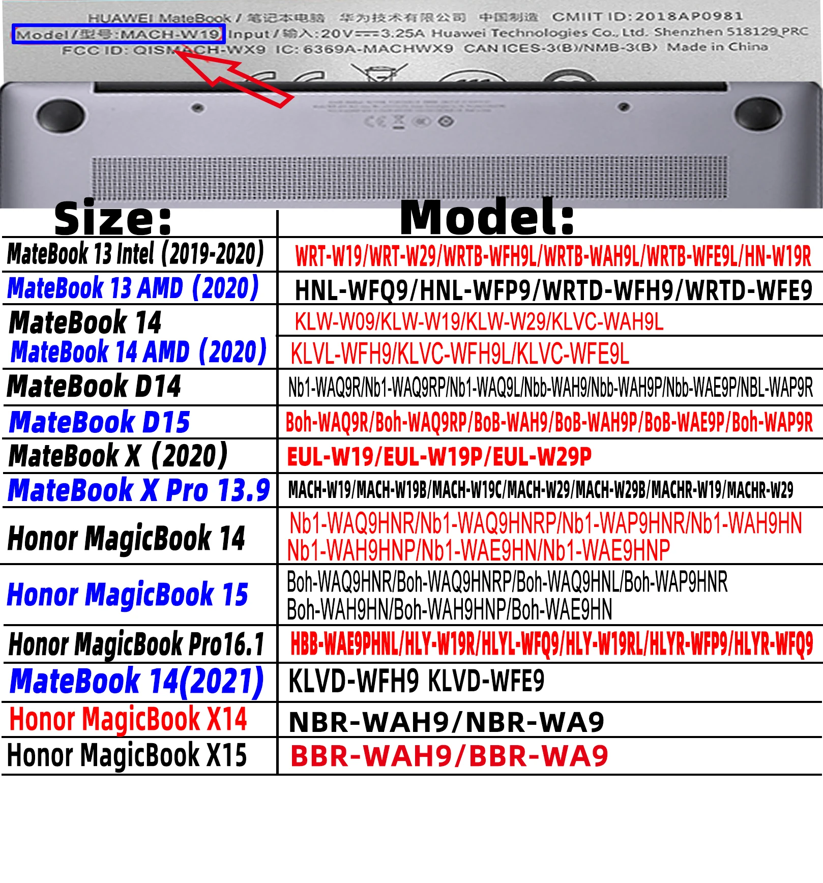 Примечание: для моделей ноутбуков Huawei найдите свою конкретную модель на задней панели ноутбука.