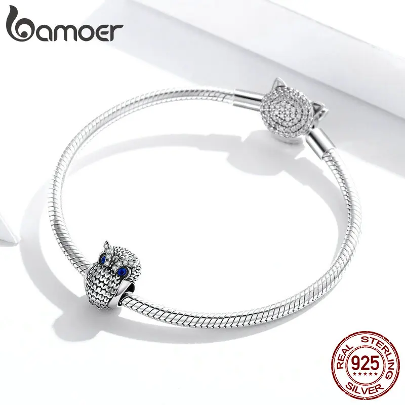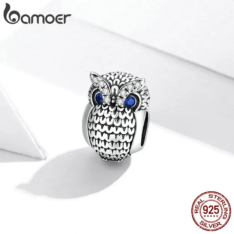Серебро 925 пробы bamoer, сияющая сова, оригинальный Шарм для бренда сделай сам, браслет сделай сам, подарок для девушки и женщины SCC1607