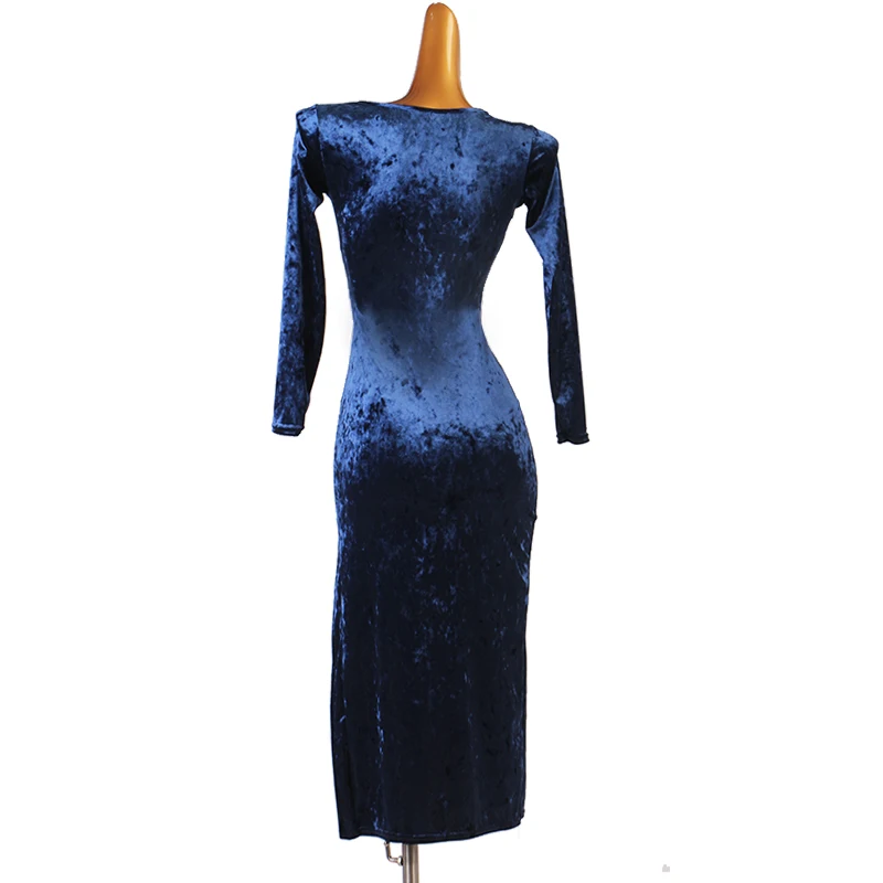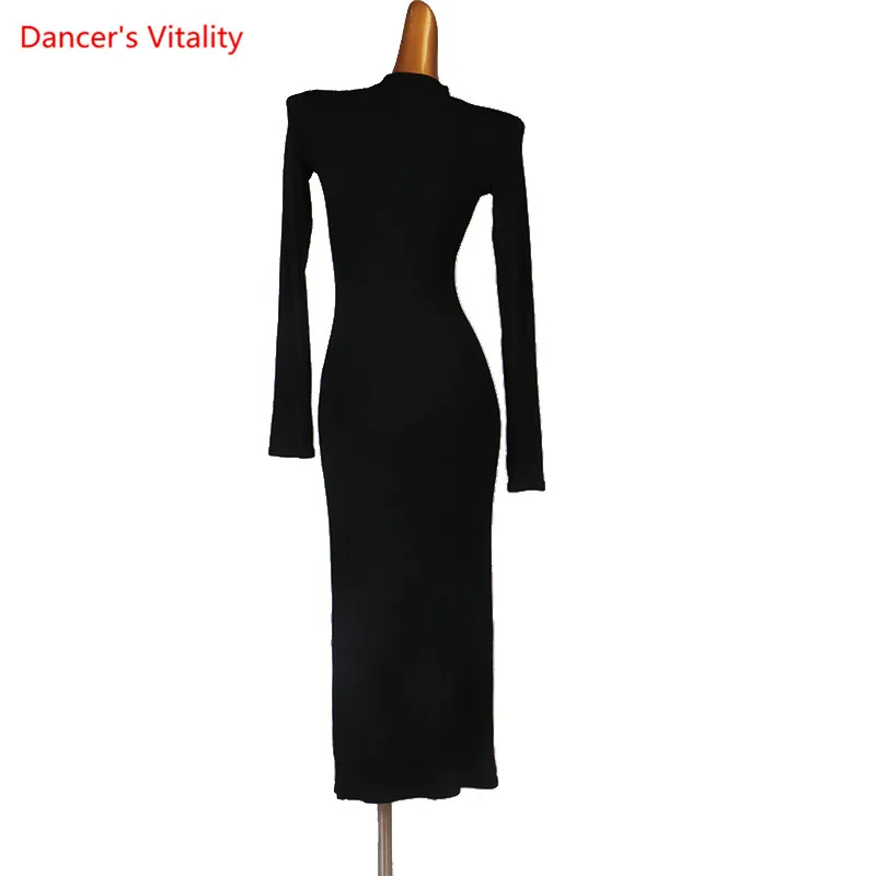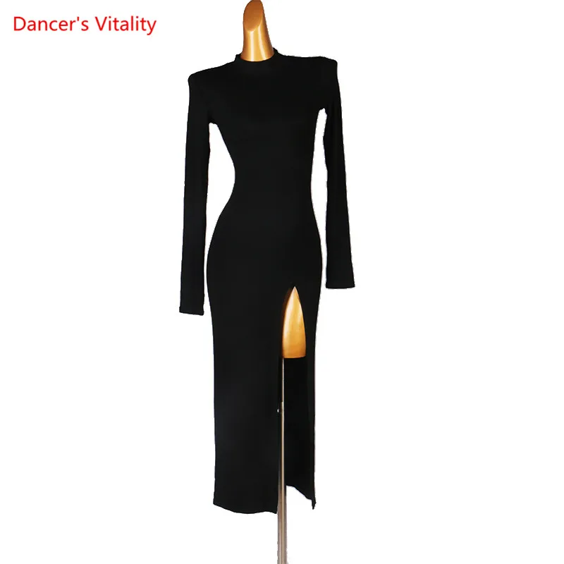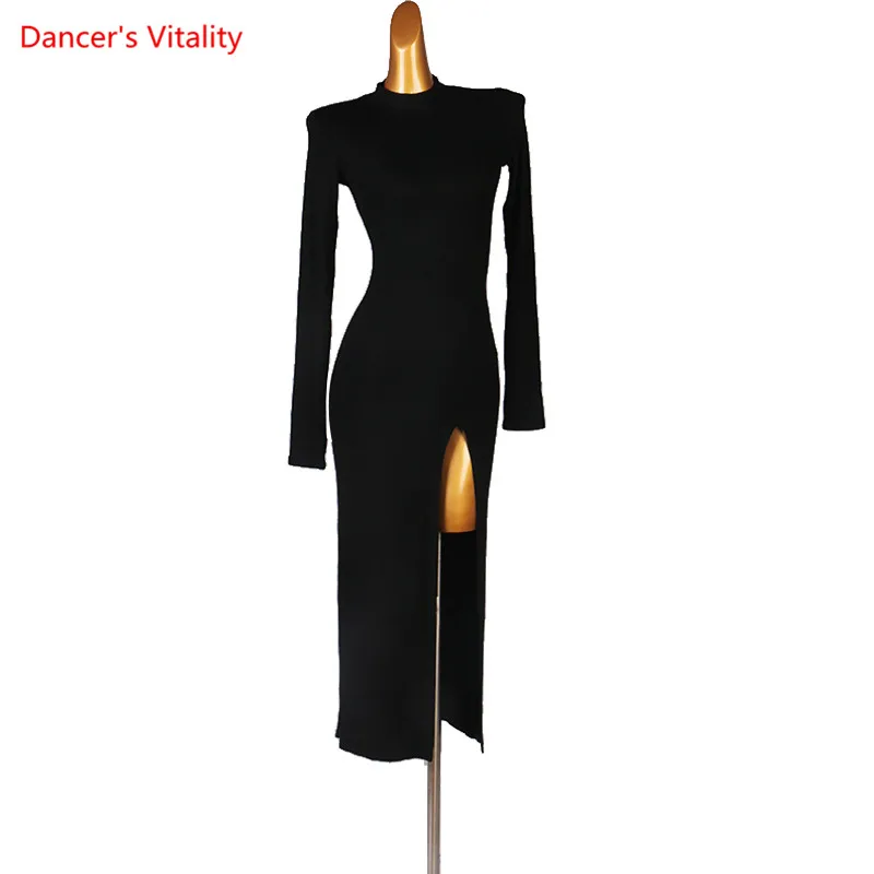 Платье женское для латинских танцев, с длинным рукавом и разрезом, профессиональная одежда для тренировок, одежда для соревнований и представлений