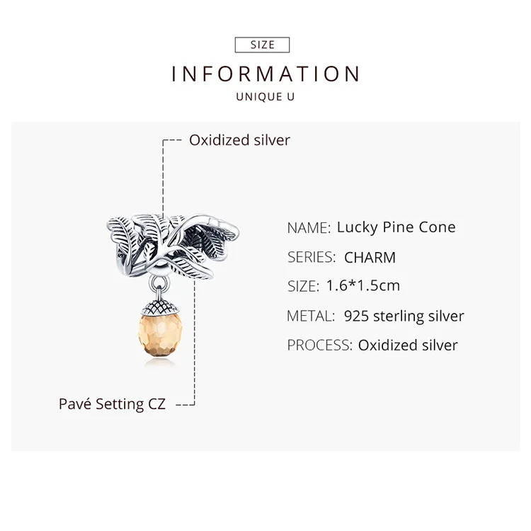 Bamoer подлинное 925 пробы серебро CZ счастливый сосновый конус Оригинальный серебряный шарм для бренда DIY браслет ювелирное изделие BSC336