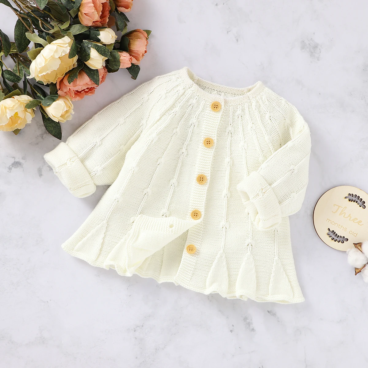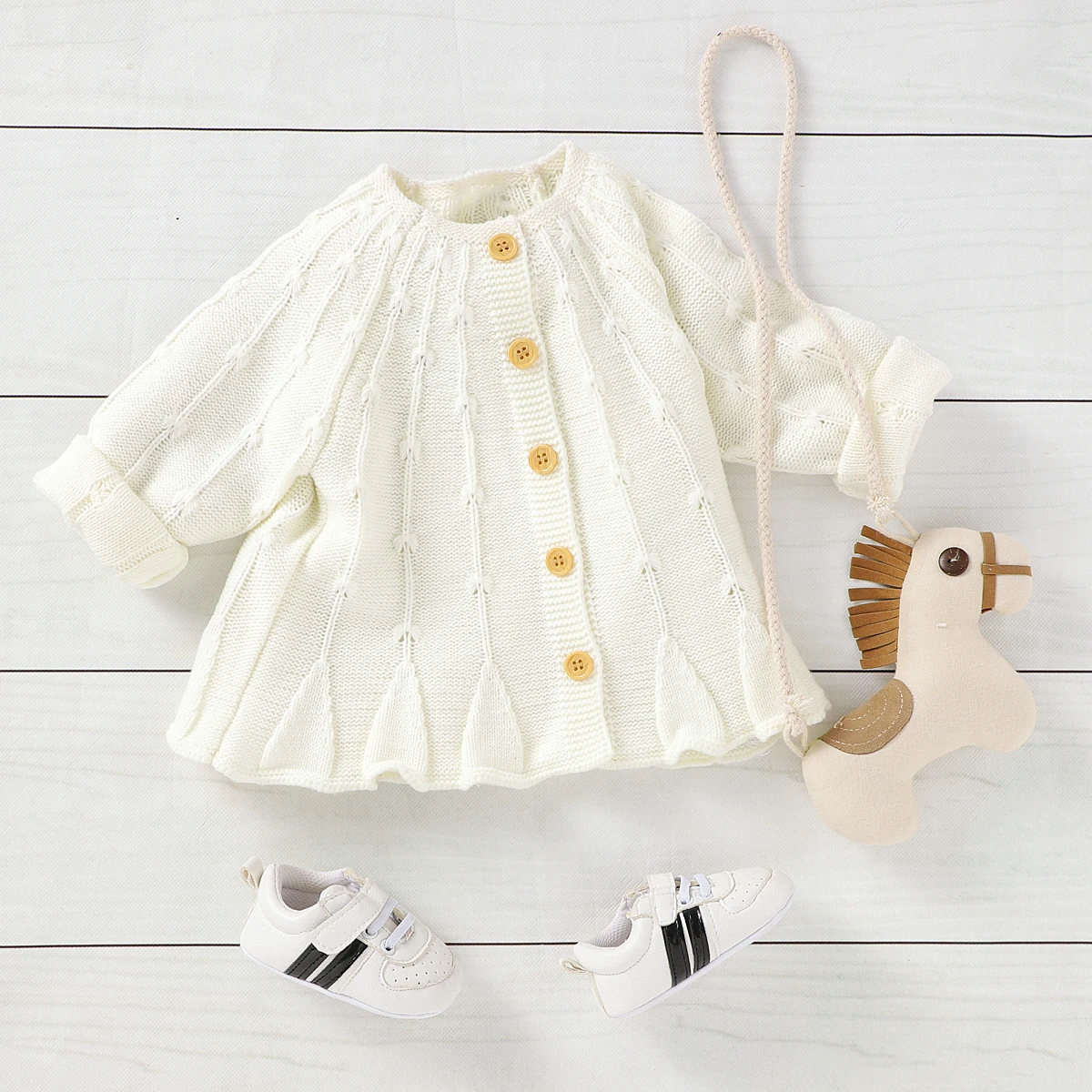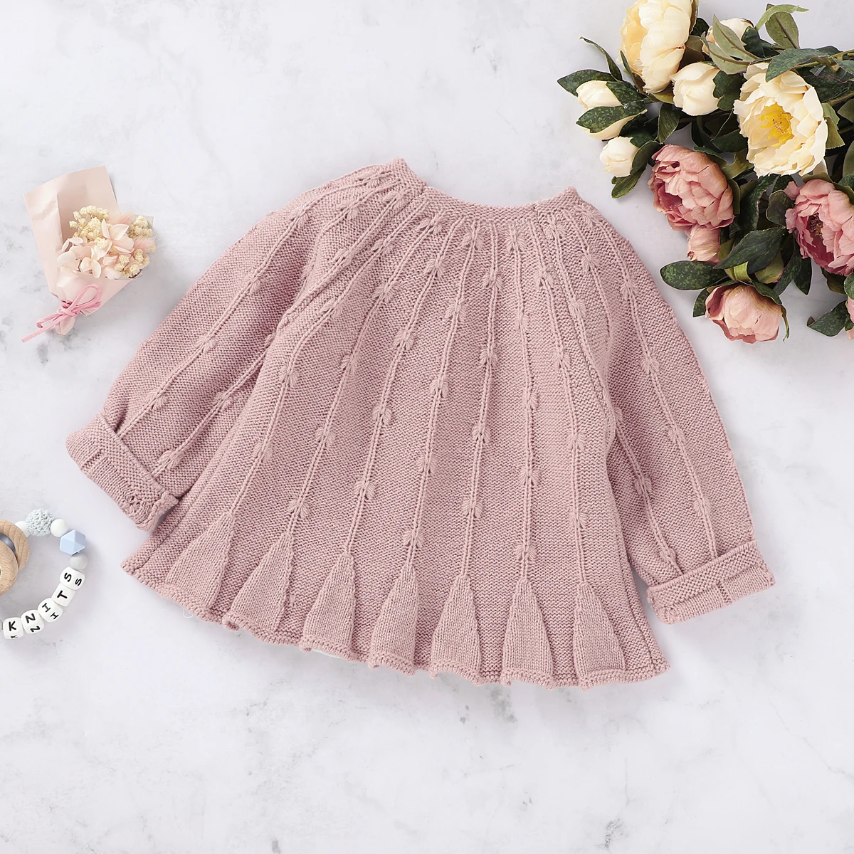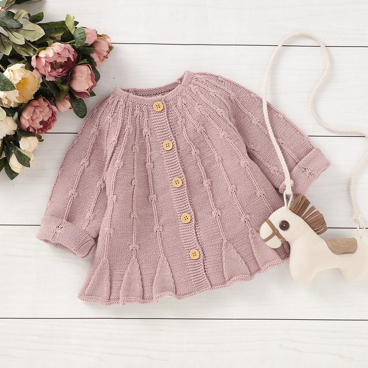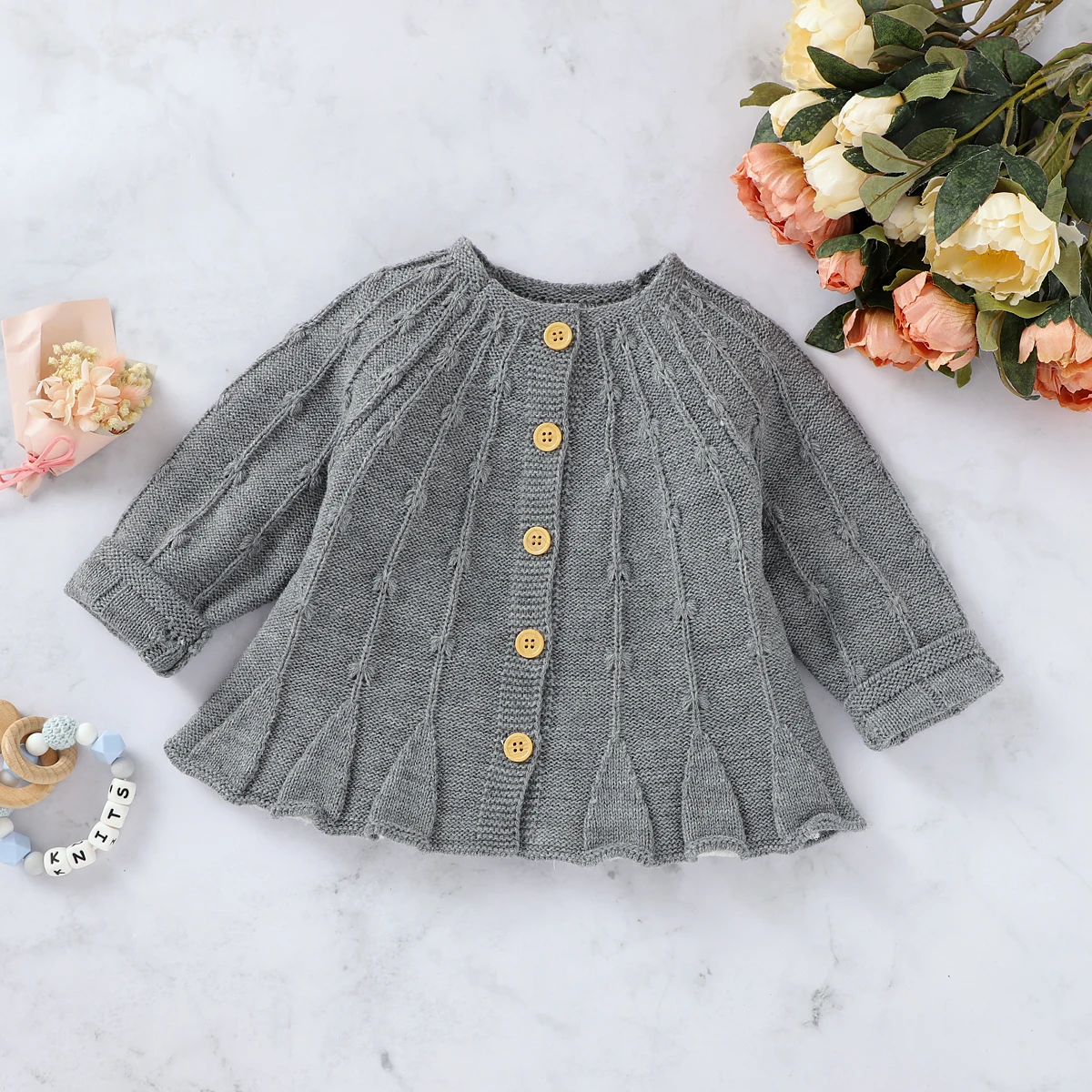 Вязаные свитера для маленьких девочек, кардиган, простая однотонная однобортная Свободная модель трапециевидной формы, теплая одежда на весну и осень