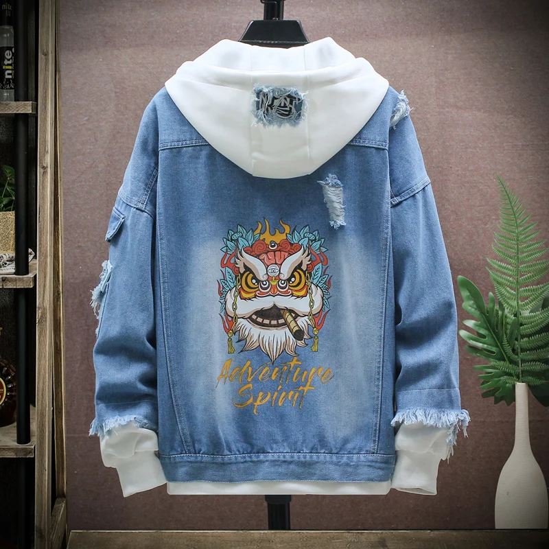 Куртка мужская джинсовая приталенная, худи из денима, рваная, Бомбе...