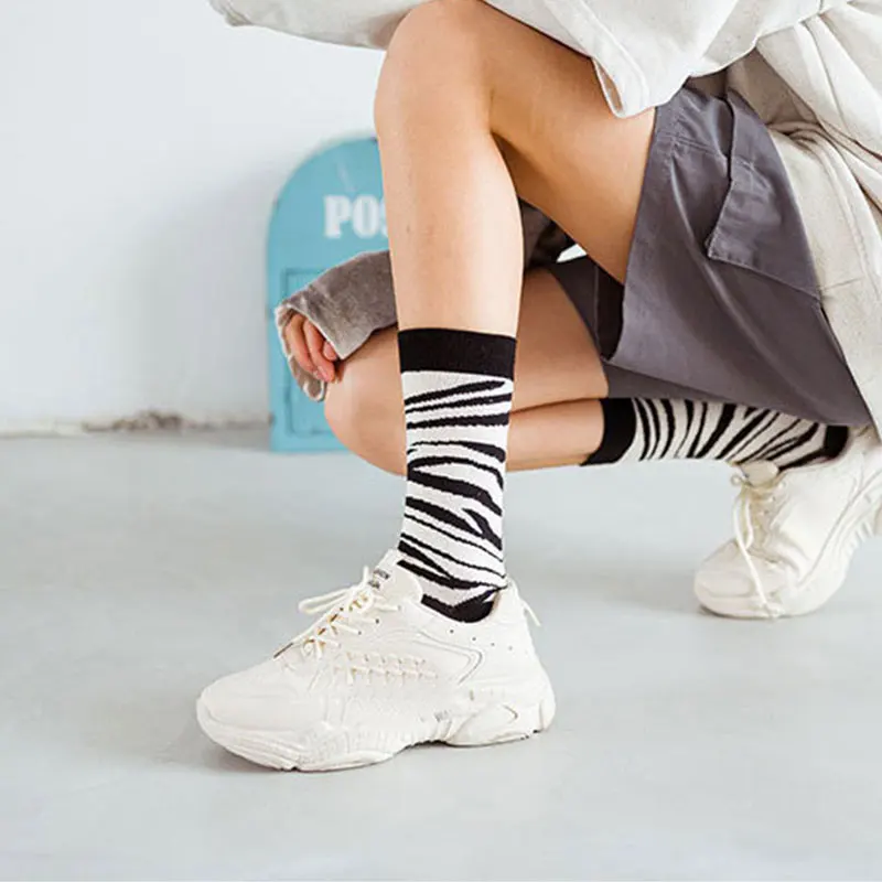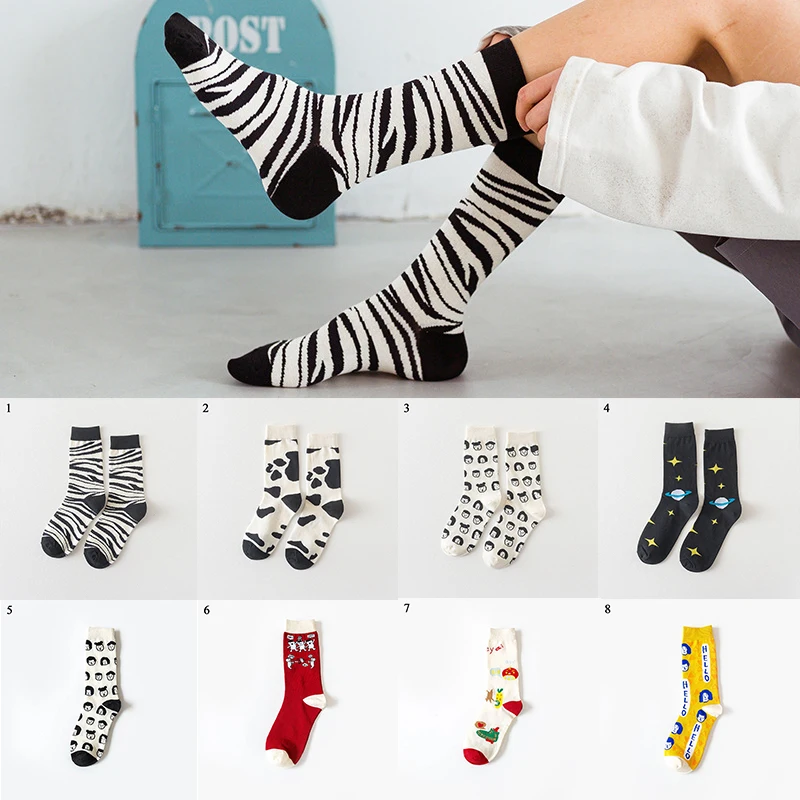 Носки женские хлопковые короткие с принтом, смешные модные с принтом коровы и зебры, для скейтборда, уличной команды в стиле хип-хоп, в стиле Харадзюку