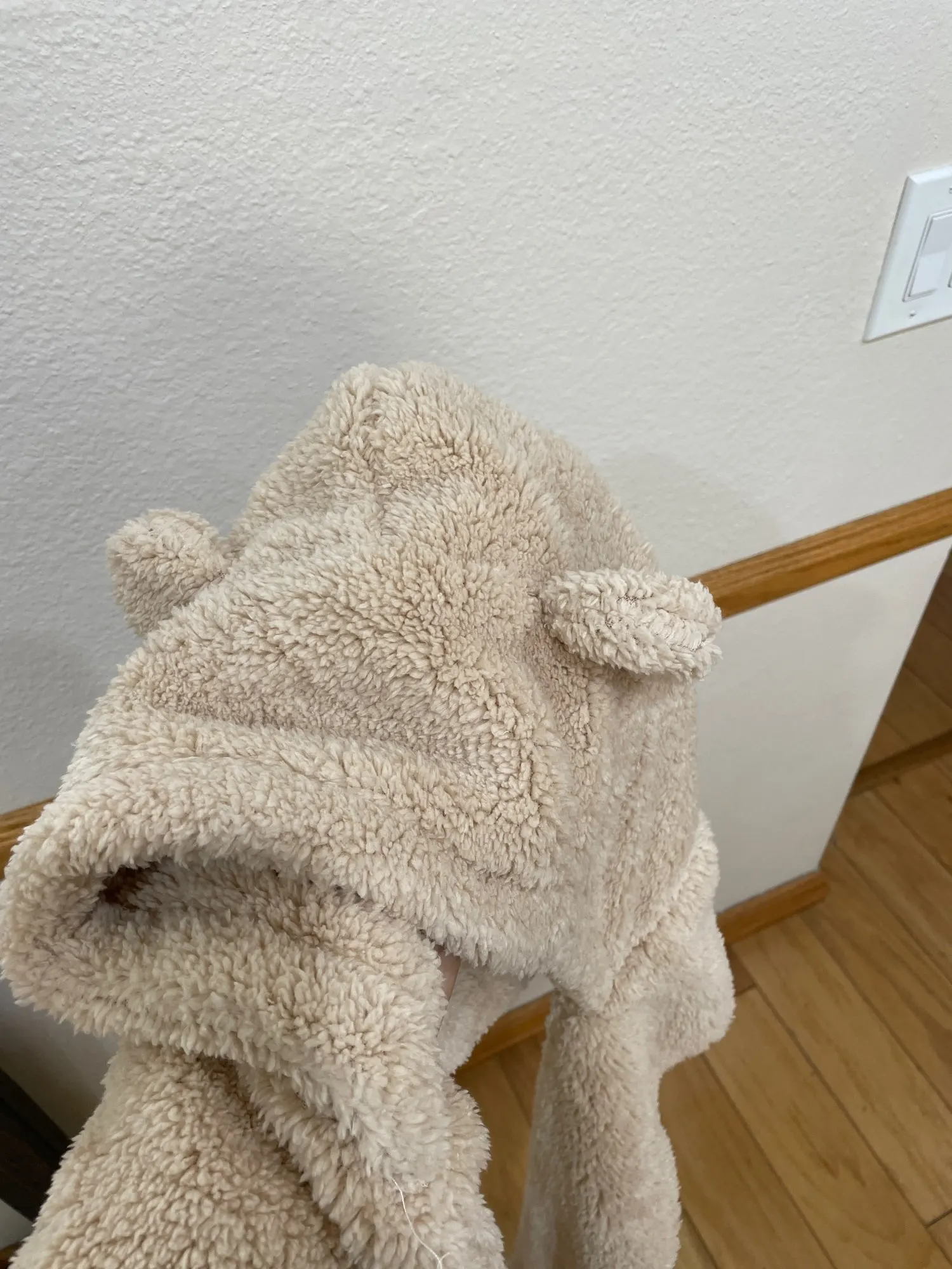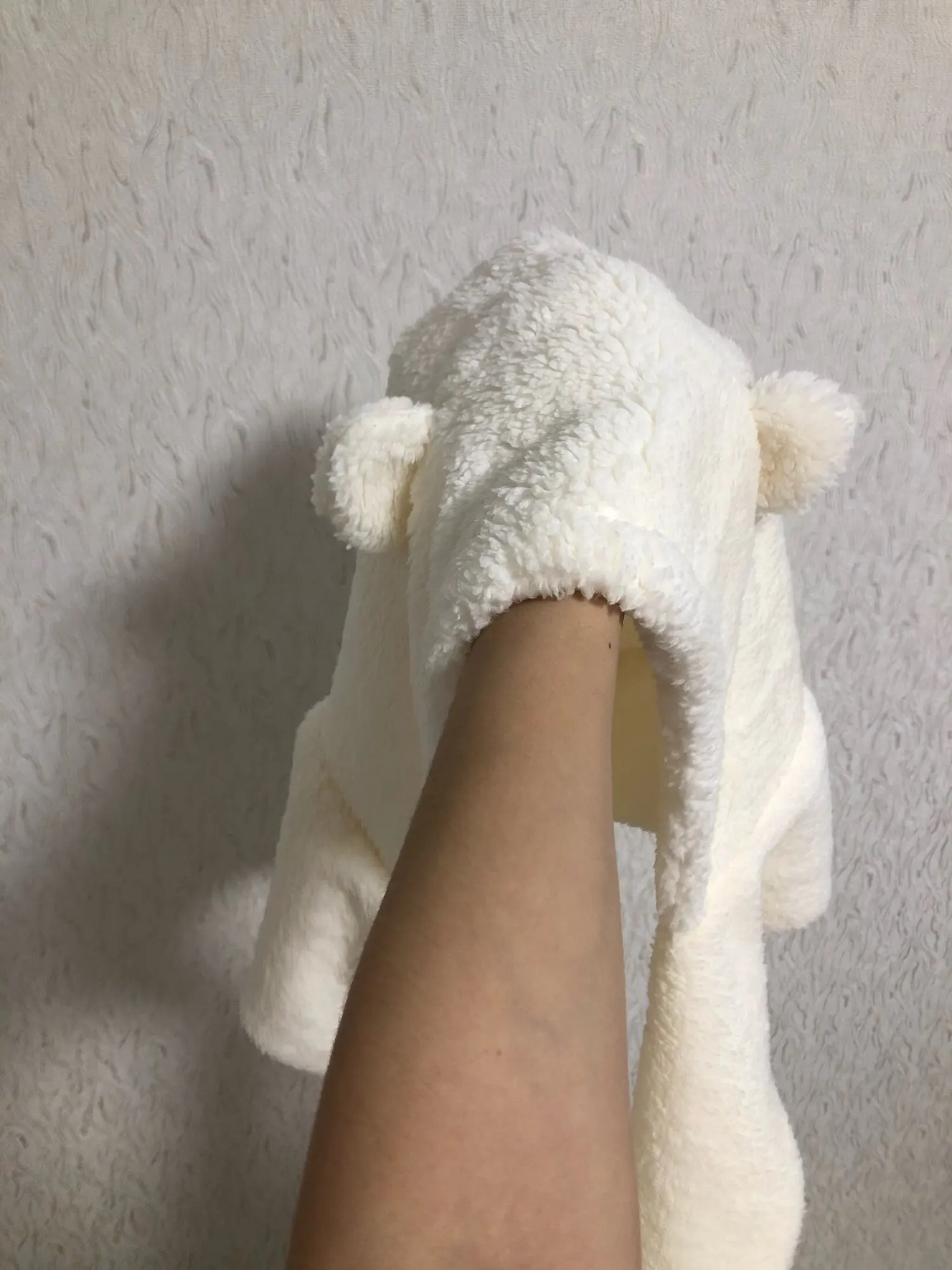 Мягкий, приятный, не думаю, что очень теплый, зато милый. Основной минус — запах. Но после полоскания в воде он слабее.