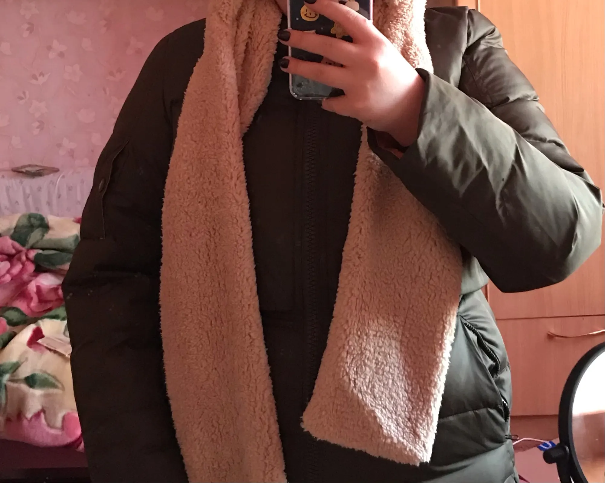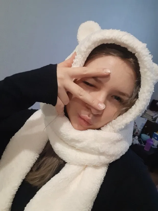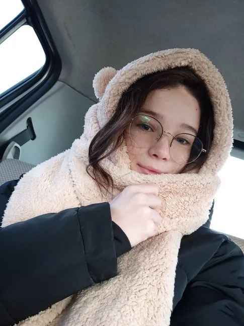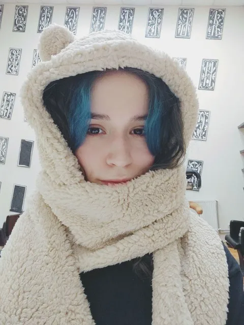 Теплая и большая шапка, налезла даже на мой арбуз хд Шарф тоже теплый, правда как нормально завязывать пока непонятно. Цвет пришел какой выбрала, довольно быстро. Мороз -17 -20 не пропускает, в самый раз. Затылок закрывает отлично, как и лоб.