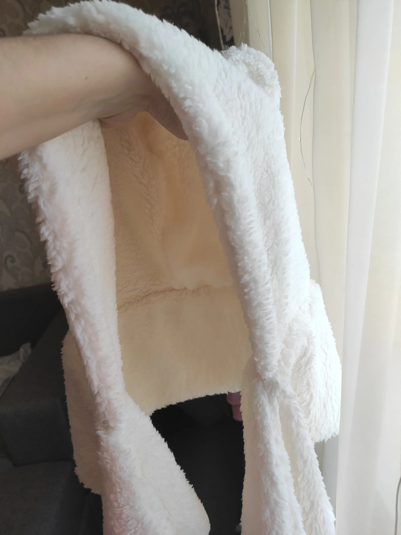 Очень мягкий и сохраняет тепло, может быть немного большим на шапочке