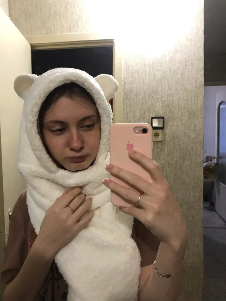 Самая милая шапочка которую я видела в своей жизни, но в ней есть недостаток — ушки заметно отличаются (на фото видно). Так же замечания для тех, кто хочет её приобрести: - если очень холодно, и особенно ветер, то в ней "не жарко", мягко скажу я вам, нужно хорошо заворачиваться; - в ней не очень удобно смотреть по сторонам, да и вообще смотреть куда-то кроме как вперёд; - так же, в дождь/снег она промокает и её нужно сушить; - если заворочиваться так, как на втором фото, нужно ходить и придерживать шарфик подлиннее, ибо он назад спадает, а это не очень удобно, особенно если в руках что-то есть. Доставили в Киев не очень быстро, но меня устроило, через ~35 дней после подтверждения, но немного потрепали нервы с отправкой, отправили в самый последний день, за три часа до отмены заказа, грубо говоря. Продавцу писала после дней шести, что где как мой заказ, на что он ответил, что отправит завтра, в итоге отправили спустя три дня после этого "завтра", думала уже отменять заказ.