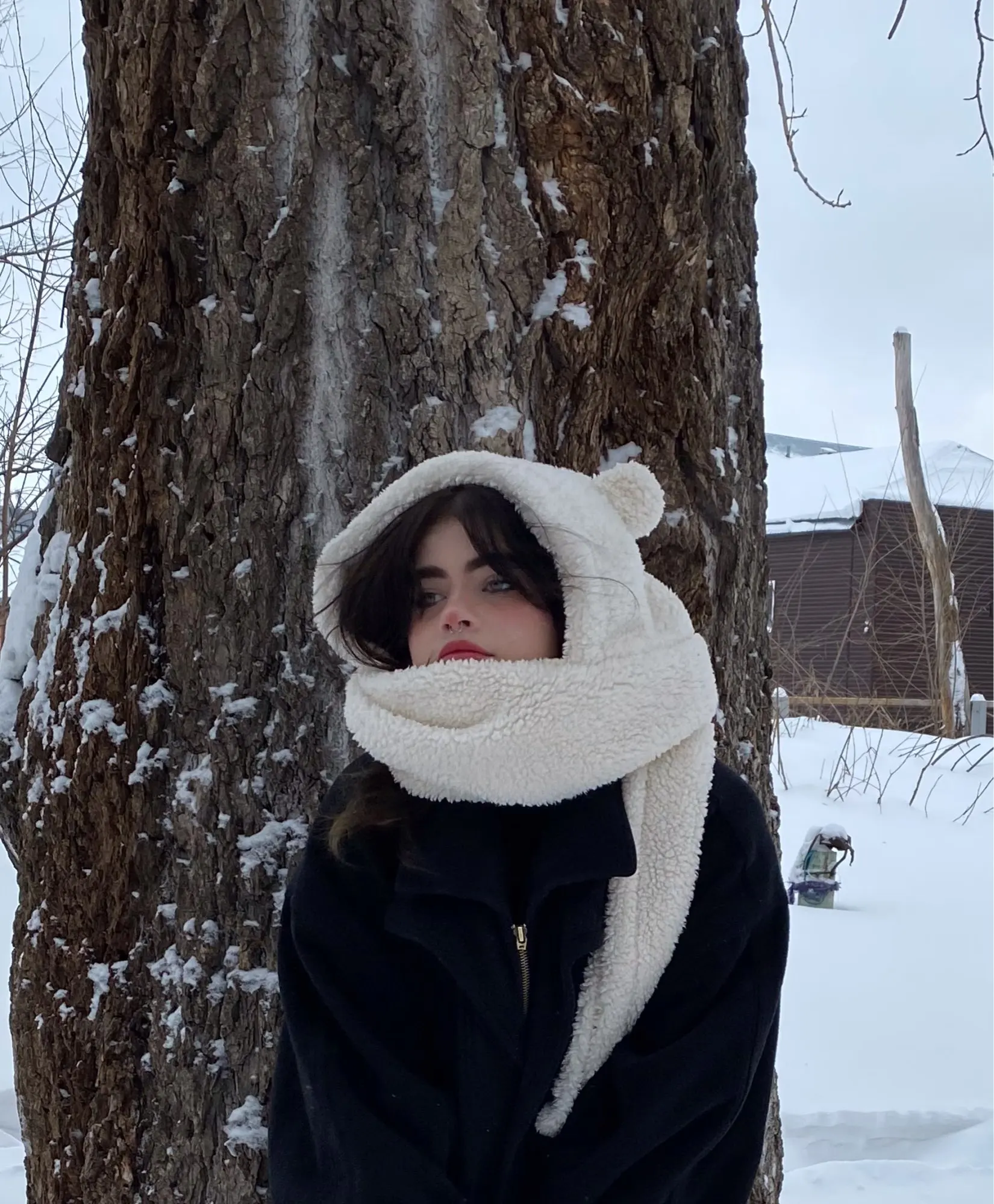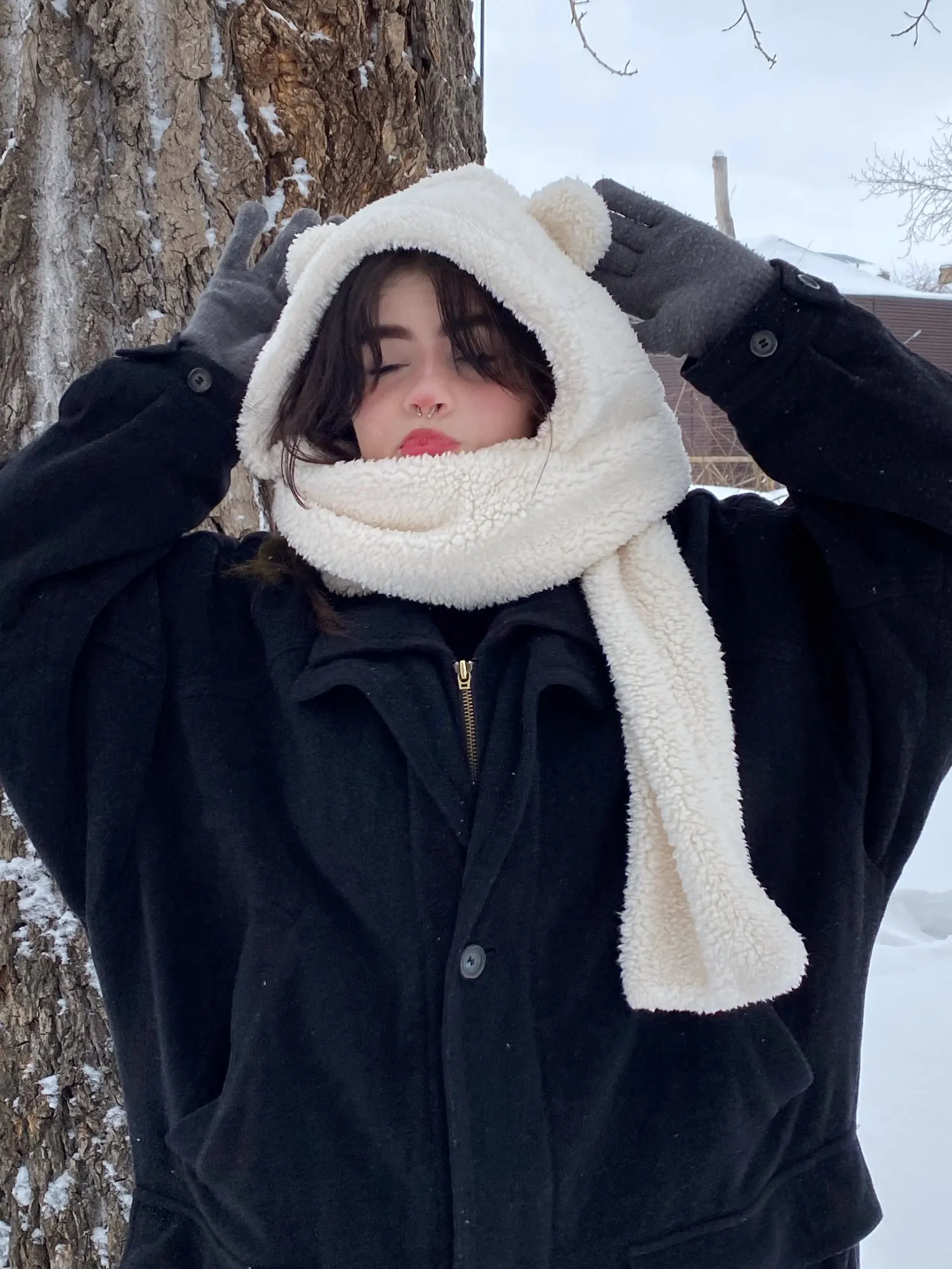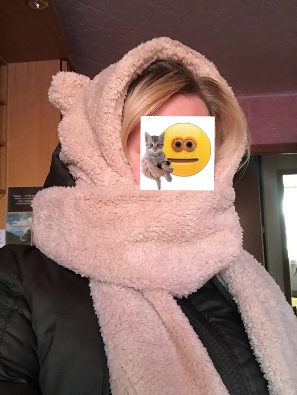 здоровский. вышла в нём на улицу в -3, комфортно, но если на вас дует ветер, вы безусловно замёрзнете, так что советую пододевать какую-либо шапо4ку. запах после распаковки действительно был сильным, но после стирки с использованием кондиционера, всё наладилось. кстати говоря, шапкашарф не облез и не перестал быть очень мягким