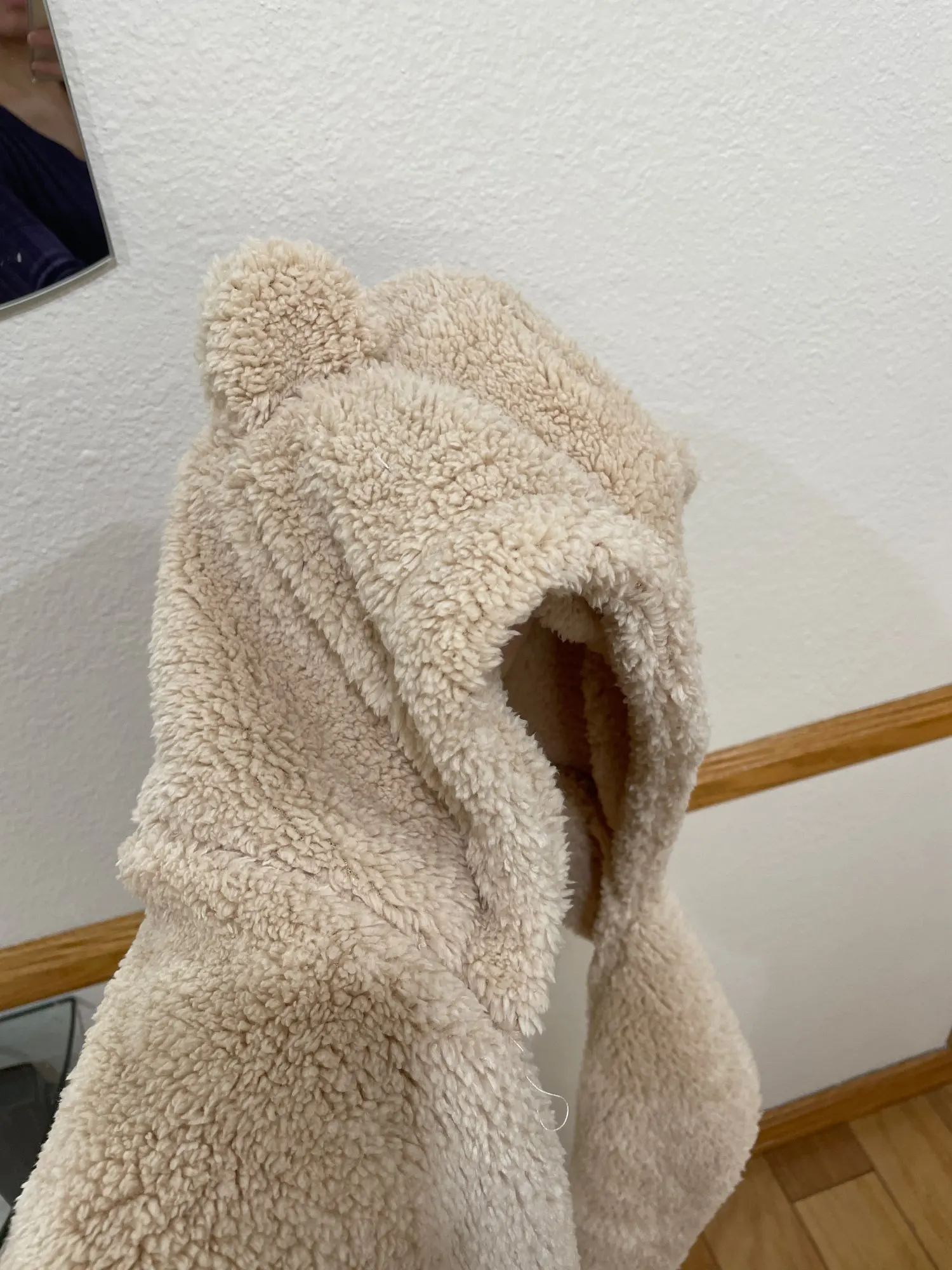 Он на удивление большой, но сохраняет тепло зимой. В целом, это хороший предмет одежды, который я бы порекомендовал всем. (он также очень мягкий)