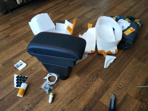 Шло долго. Продавец сам продлил защиту, не общались. Упаковано неплохо, но лучше было бы, наверное, в пупырку ещё. По качеству вполне достойно, хоть пластик и не отличный, со следами литья, местами пришлось подрезать для более эстетичного вида. Запаха нет. Хорошая комплектация: саморезы с запасом. запасные "ножки", кабель и модуль в прикуриватель. Модуль не пробовал в работе - стоит свой, шнур работает, юсб не проверял, но подсветка на всех работает. На XRAY встало хорошо, достаточно крепко держится, без доработок. Только что нужно привыкать к ручнику, ремню и передачам. Ящичек. думаю, придётся обклеить чем-нибудь, чтобы не гремело. В комплекте только на дно ящика подобие корпета куском. В целом вполне хороший подлокотник. Чуть дешевле был бы и вообще отлично.