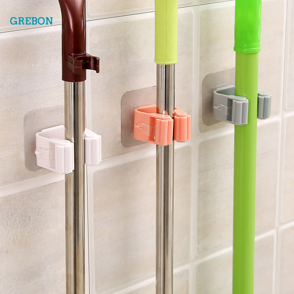 Настенный держатель-органайзер для швабры, 1 шт., вешалка для метлы, крючок для ванной, кухонный инструмент для хранения, бесшовный клейкий зажим для дома