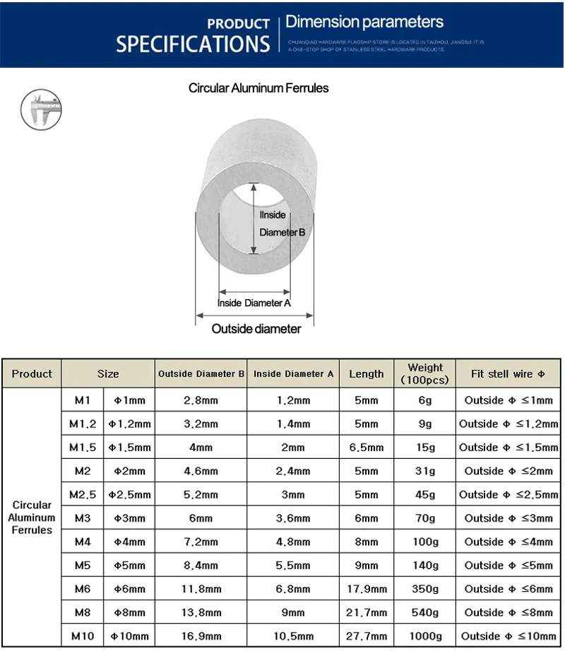 Обратите внимание, что M1 подходит для диаметра тросаΦ1 мм или меньше. M2 подходит для проволочного каната диаметром 2 мм или меньше. И так далее.